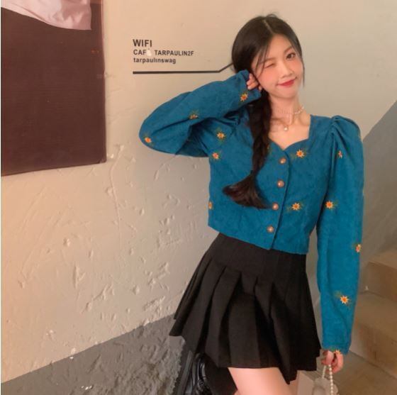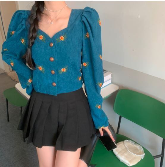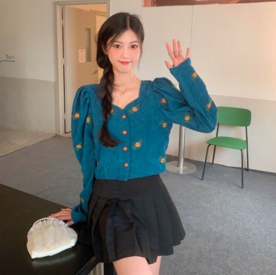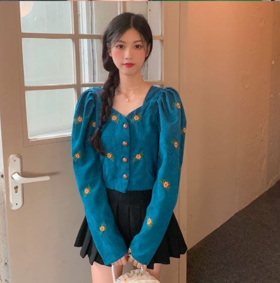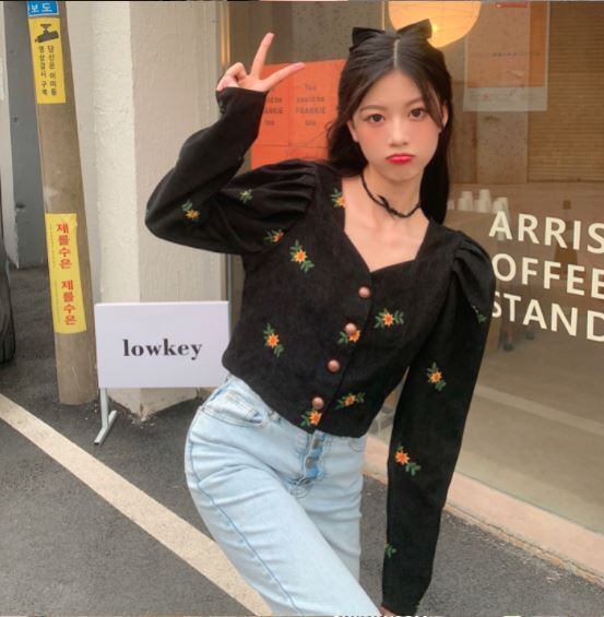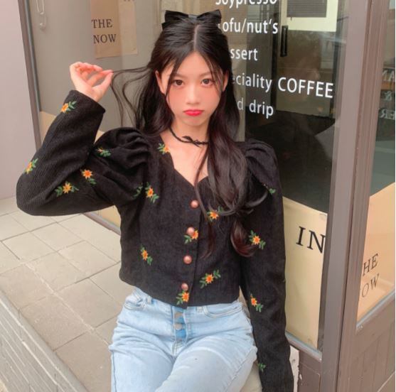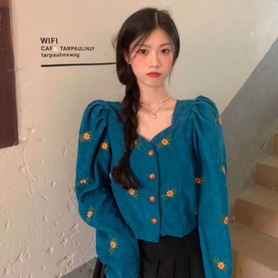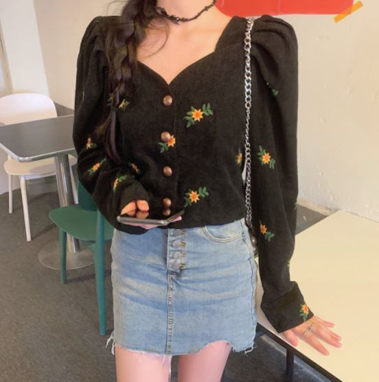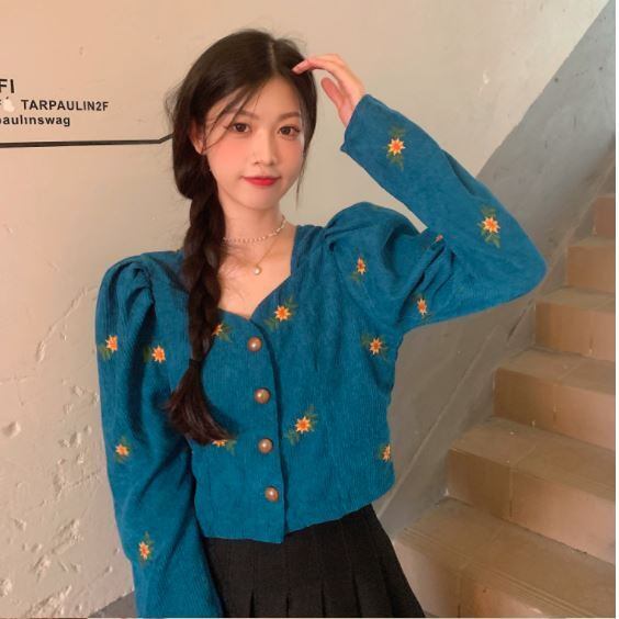 刺繍ショートカーディガントップス ショート丈 袖あり シゴ袖 Vネック 襟なし スリム タイト 細身 刺繍 前開き ボタン コーデュロイ ハイウェスト かわいい 大人可愛い きれいめ おしゃれ お洒落 レトロ 大人女子 こなれ感 ラブリー キュート 個性的 モダン 主役級 存在感 小花柄 春 秋 10代 20代 レディース 女性用 着回し コーデ スタイル モテ 流行 インスタ映え 即納 海外 イメチェン 好感度 イメージアップ 外国 注目 話題 新入荷 今だけ 目玉 おすすめ ブランド トレンディ