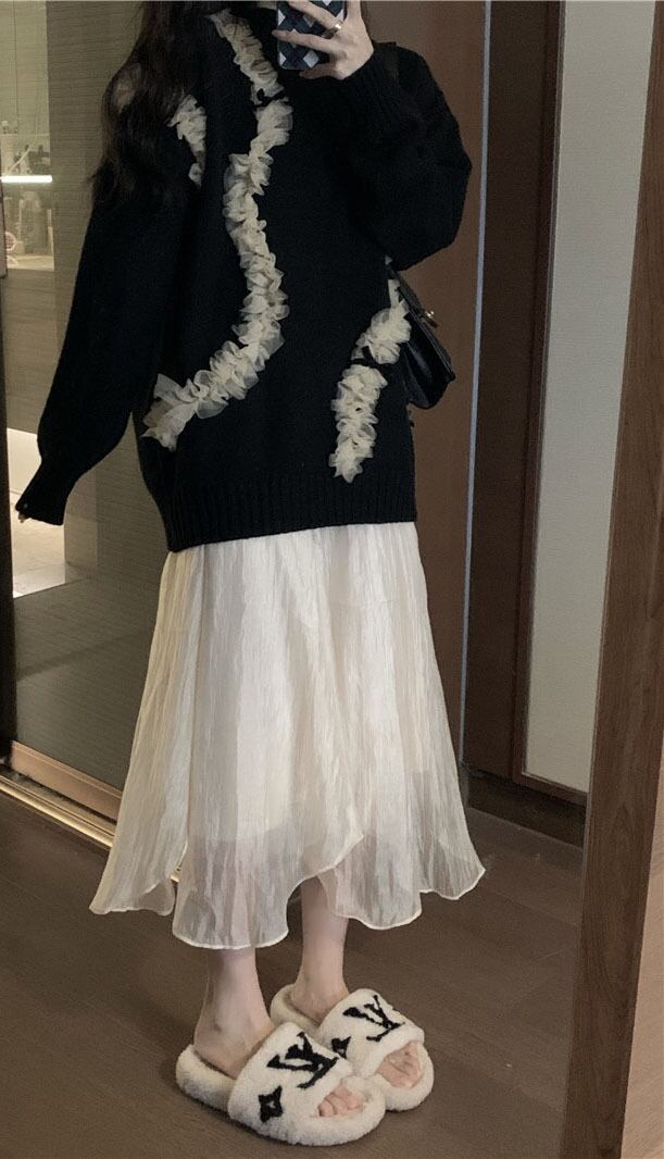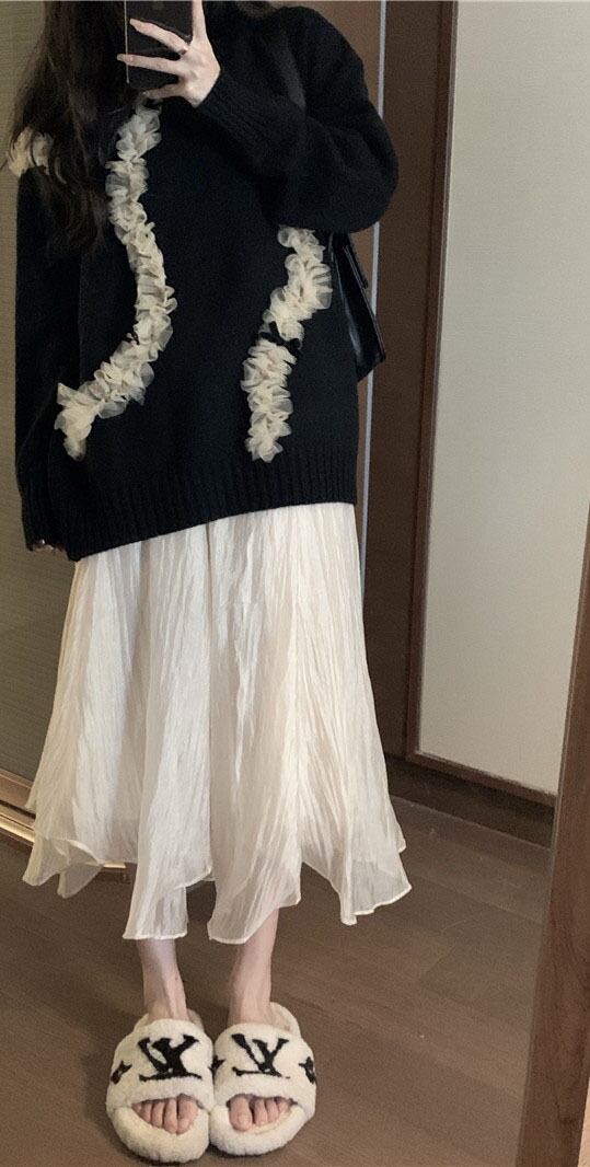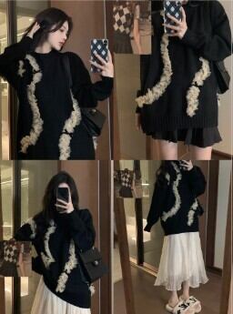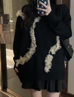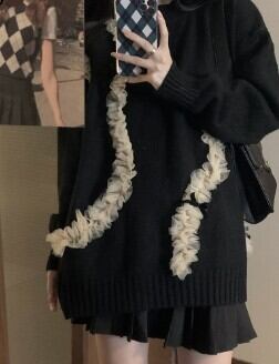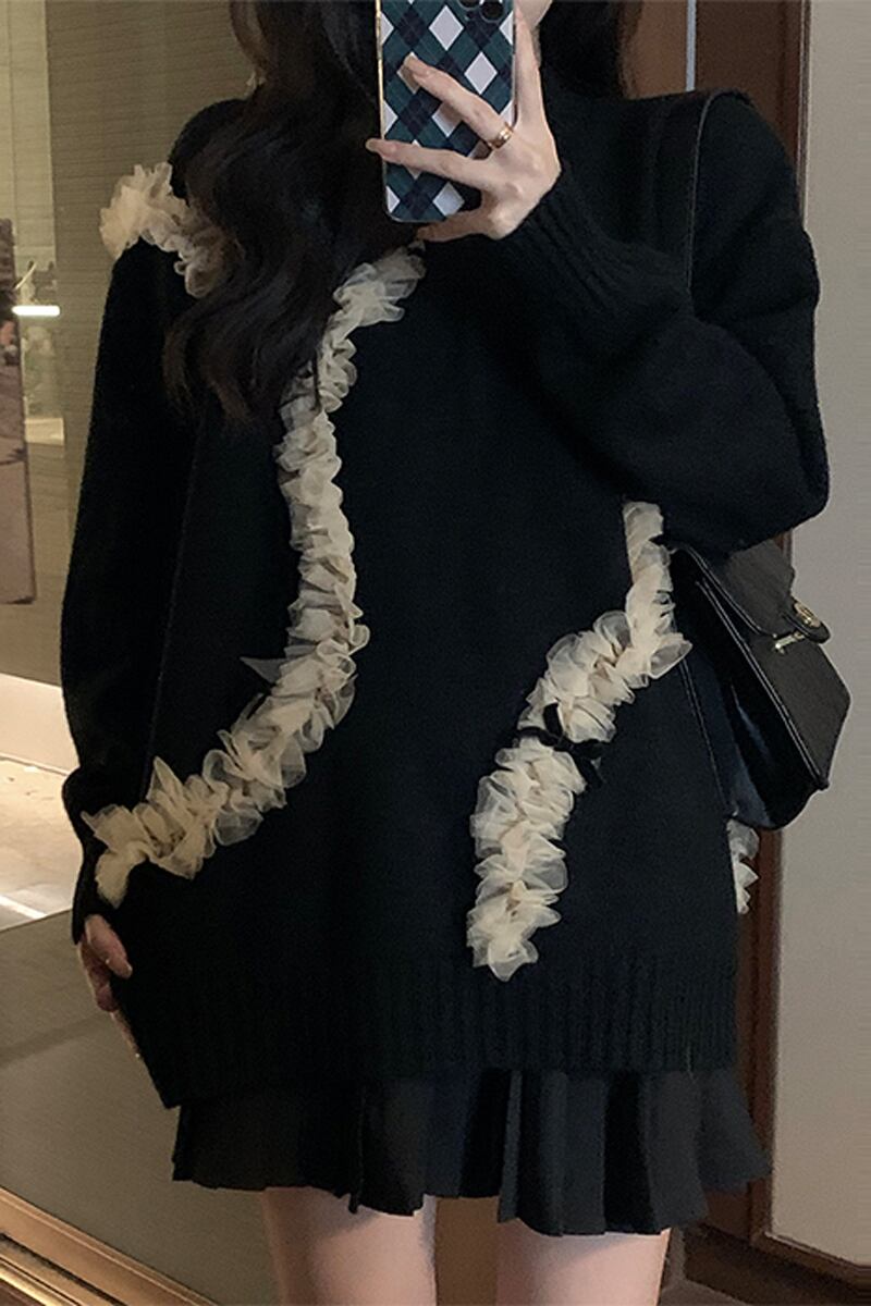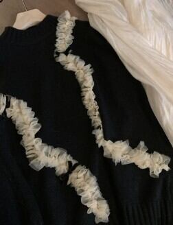 レースをまとわせたスタイルが個性的なプルオーバーセータです。