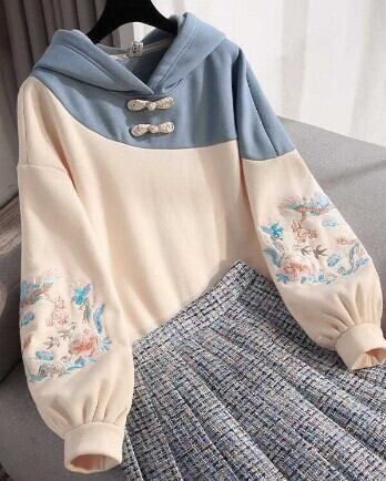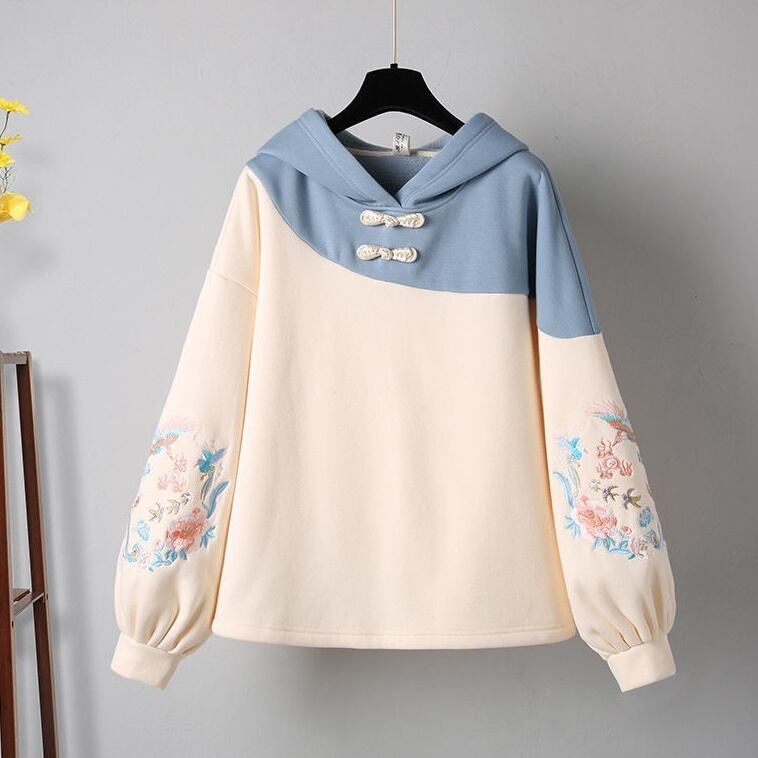 フーディー トップス パーカー 長袖 フード付き チャイナ風 かわいい 大人可愛い おしゃれ お洒落 レトロ 大人可愛い 大人女子 ラブリー キュート ガーリー 個性的 主役級 存在感 花柄 フラワー 秋 冬 10代 20代 30代 レディース 女性用 ママ デート お出かけ 女子会 お泊まり 休日 着回し 普段使い 韓国 韓国系 ファッション コーデ スタイル 楽ちん 新作 定番 送料無料 トレンド 流行 ゆったり ゆる インポート 海外 人気 大人カジュアル バイカラー コスパ 合わせやすい
