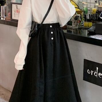 重ね着スタイルが簡単に楽しめるロング丈スカート。フレアシルエットで女性らしい印象に。