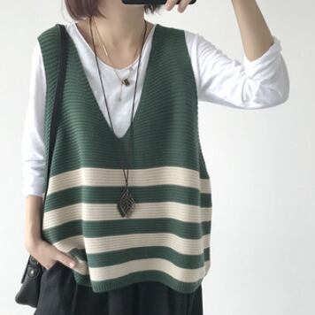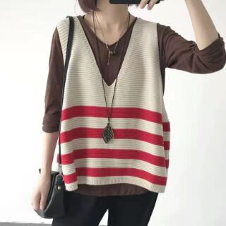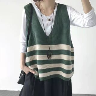 ボーダー柄のニットベストです。