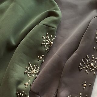 2枚重ねトレーナーは、さまざまなシーンで活躍してくれる優れもの。グリーンとグレーの2色展開で、どちらもモード系のスリムなシルエットが特徴的です。シンプルなデザインだからこそ、大人女子にもぴったりな上品さがあります。