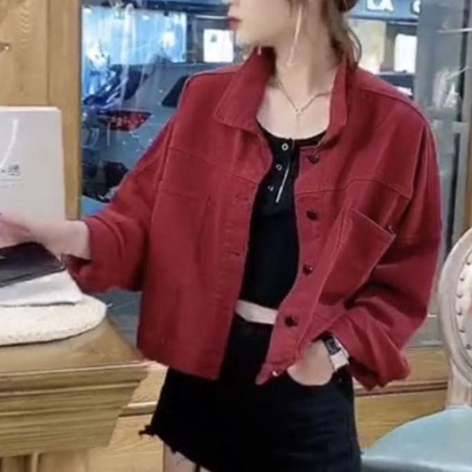 オーバーサイズ 胸ポケット付き アウター ジャケット Gジャン 上着 ショート丈 長袖 ドロップショルダー 襟付き 前開き カラーデニム シンプル カジュアル 大人 上品 おしゃれ お洒落 かっこいい 大人女子 こなれ感 ラフ ルーズ クール 無地 春 秋 冬 レディース 女性用 ママ マタニティ 女の子 学生 通学 デート お出かけ 女子会 休日 着回し 普段使い 重ね着 韓国系 オルチャン ファッション コーデ スタイル 体系カバー 脚長 S M L XL ゆったり ゆる サイズ レッド