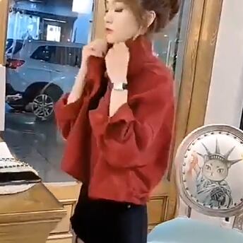 ウエストにかかるぐらい~ウエストが隠れるぐらいの短めの丈感で、ボトムの丈感を問わずに合わせやすくすっきり足長見せが狙えます。