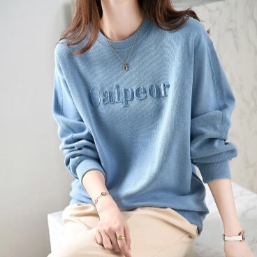 ロゴ入りの淡いカラーがかわいい長そでトップスです。