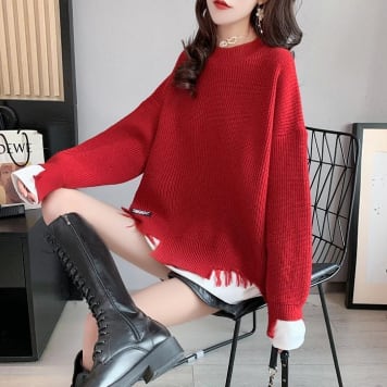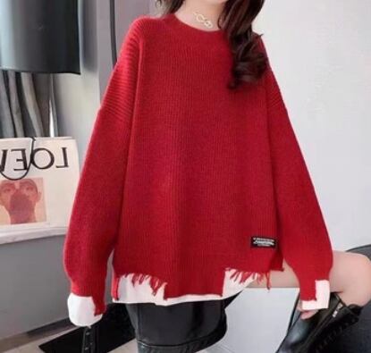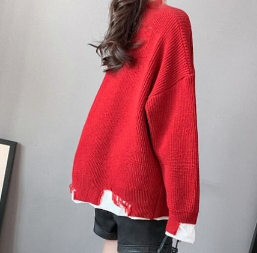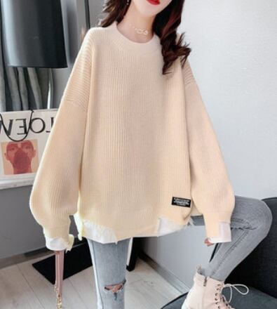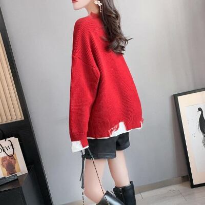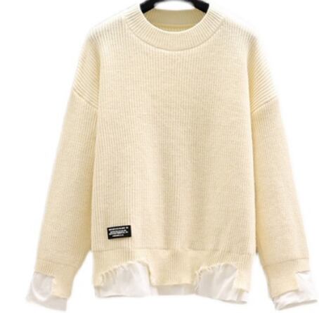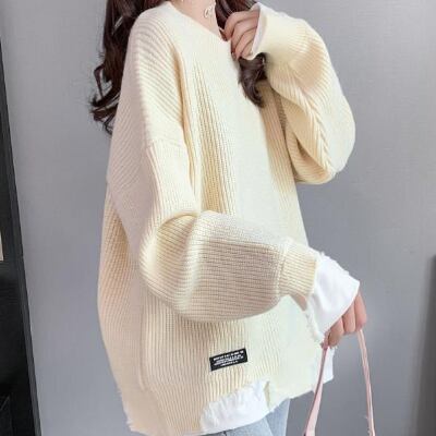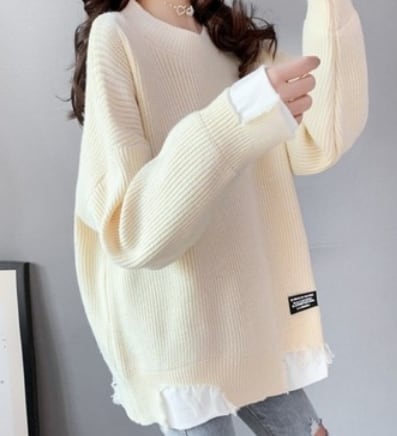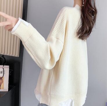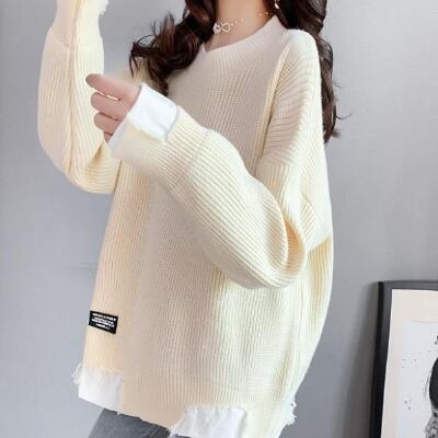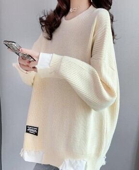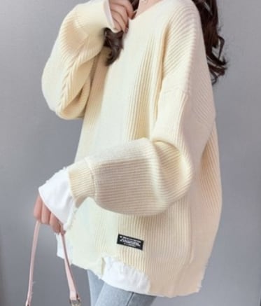 重ね着風カジュアルゆったりニット トップス ニット ロング丈 長袖 ボリューム袖 ラウンドネック 切り替えデザイン 伸縮性 異素材MIX かわいい 大人可愛い シンプル カジュアル 大人 おしゃれ かっこいい ラフ メンズライク マニッシュ ボーイッシュ 無地 春 秋 冬 10代 20代 30代 40代 レディース ママ 女の子 学生 通学 デート お出かけ 公園デビュー お泊まり 休日 着回し 普段使い 重ね着 お揃い 双子 ファッション コーデ 体系カバー L XL 2XL 3XL 4XL