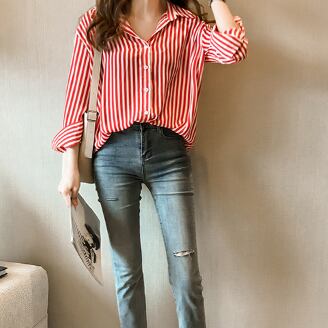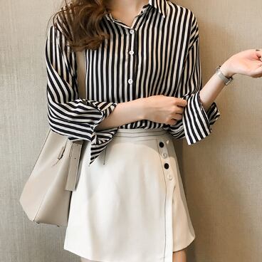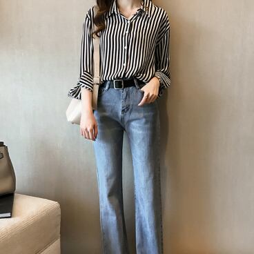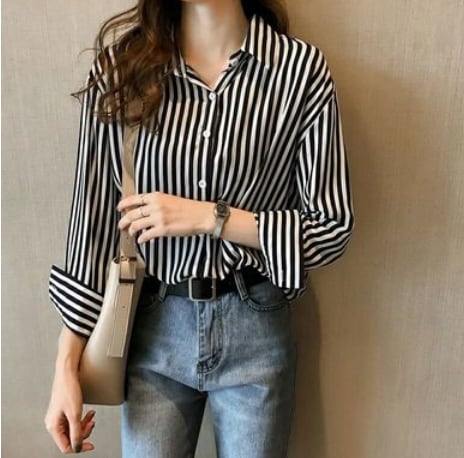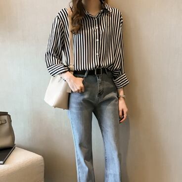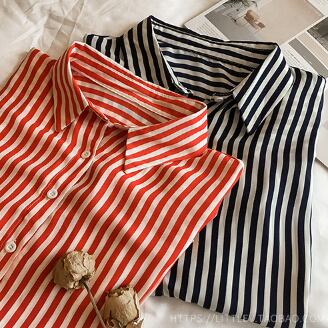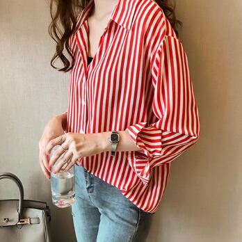 このストライプ長袖ブラウスで、日常のスタイリングをワンランク上へ。あなたの美しさを引き立て、周りの注目を集めること間違いなしです。