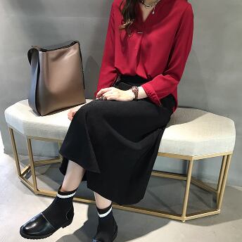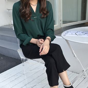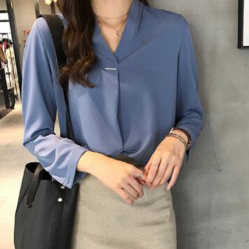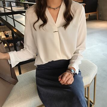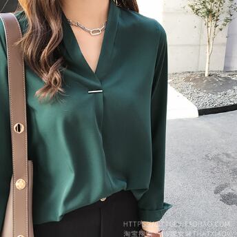 シンプルで大人っぽいVネック長袖ブラウスです。