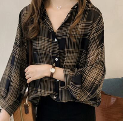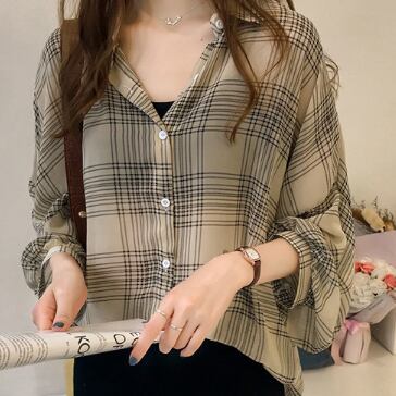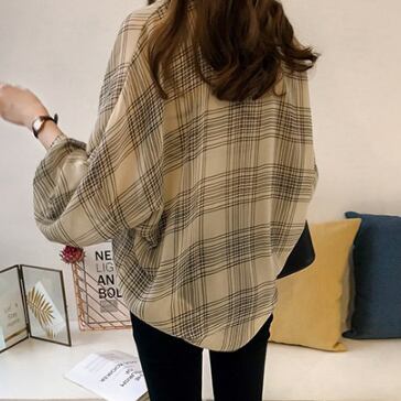 ゆったりチェック柄長袖ブラウス トップス シャツ ブラウス 長袖 Vネック シフォン かわいい 大人可愛い きれいめ シンプル カジュアル 大人 上品 おしゃれ かっこいい レトロ 大人女子 こなれ感 柄 チェック柄 春 夏 秋 10代 20代 30代 40代 50代 レディース ママ 女の子 オフィス OL 通勤 学生 通学 お出かけ 公園デビュー お泊まり 休日 お散歩 着回し 普段使い ファッション コーデ スタイル 楽ちん 定番 M L XL 2XL 3XL 4XL 大きいサイズ 大きめ ゆったり