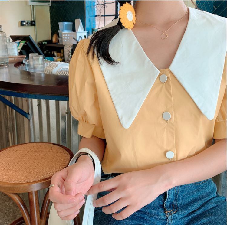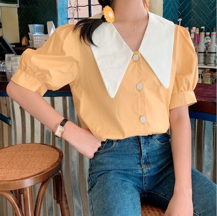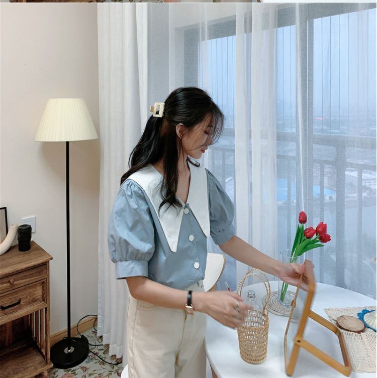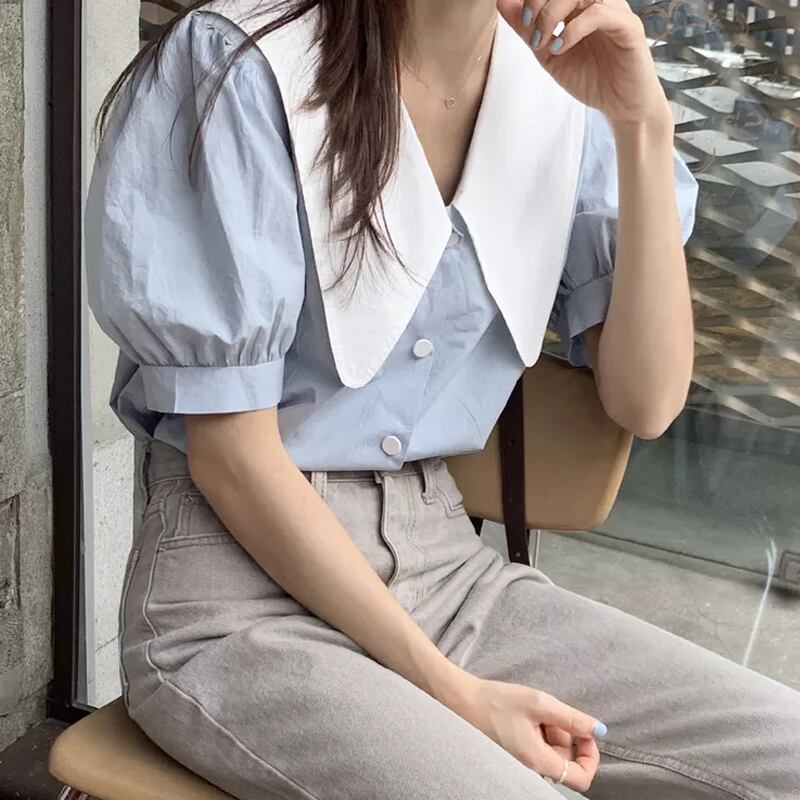 大襟セーラーカラーブラウス トップス ブラウス ミディアム丈 袖あり パフスリーブ 襟付き セーラーカラー 前開き ボタン 綿 かわいい 大人可愛い きれいめ シンプル 大人 上品 おしゃれ お洒落 レトロ 大人女子 こなれ感 ラフ ラブリー キュート ガーリー 個性的 主役級 存在感 抜け感 無地 夏 10代 20代 30代 レディース 女性用 オフィス OL 通勤 学生 通学 デート お出かけ 女子会 休日 イベント リゾート 旅行 着回し ファッション コーデ モテ トレンド 流行 インスタ映え
