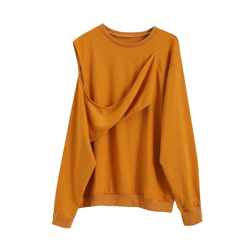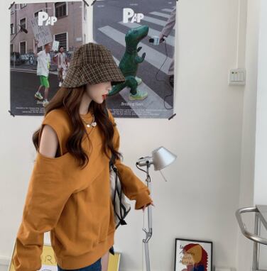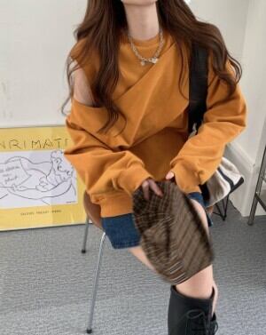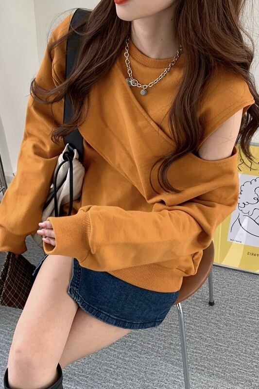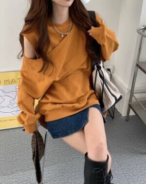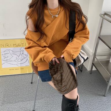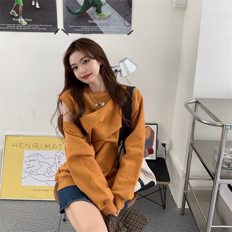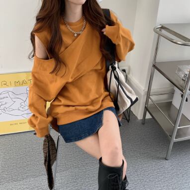 オフショルダープルオーバー トップス ストリート レギュラー丈 袖あり 長袖 ラウンドネック 大人女子 大人 上品 おしゃれ かっこいい クール デイリーウェア レトロ レトロ風 こなれ感 ラフ ルーズ シルエット キュート かわいい 女子 個性的 デザイン 主役級 存在感 無地 秋 オータム 20代 10代 30代 レディース 女性用 学生 通学 デート お出かけ 女子会 着回し 普段使い 重ね着 トレンド ファッション コーデ スタイル S M L XL