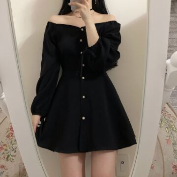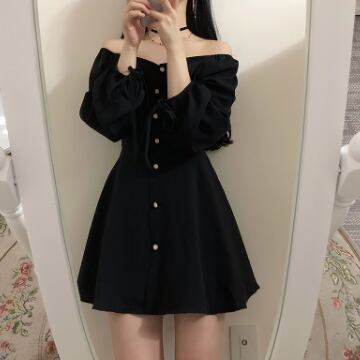 オフショルダーワンピース ショート丈 袖あり パフスリーブ ワンショルダー ワンショル Aライン シフォン 前開き ボタン かわいい 大人可愛い きれいめ おしゃれ お洒落 レトロ 大人女子 個性的 クール モード系 セクシー エレガント モダン 主役級 存在感 フォーマル 無地 秋 冬 10代 20代 レディース 女性用 OL 学生 デート お出かけ 女子会 休日 パーティー イベント リゾート 旅行 ホテル ガーデン レストラン ファッション コーデ スタイル モテ 脚長 プレゼント 新作 トレンド