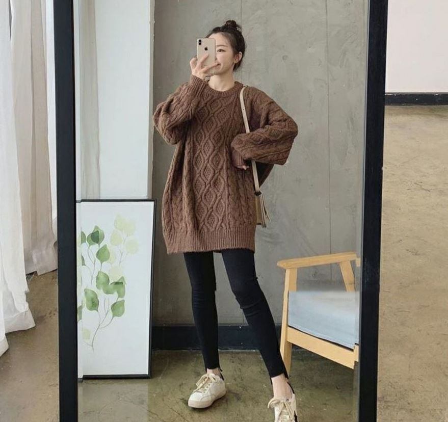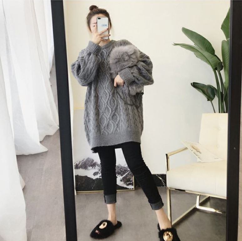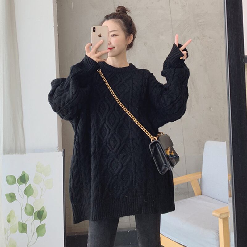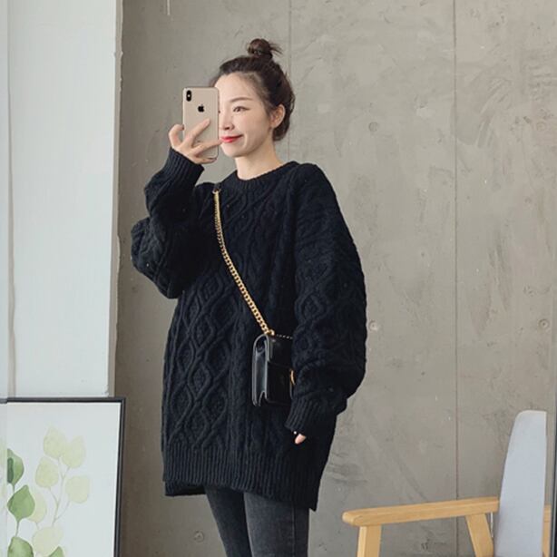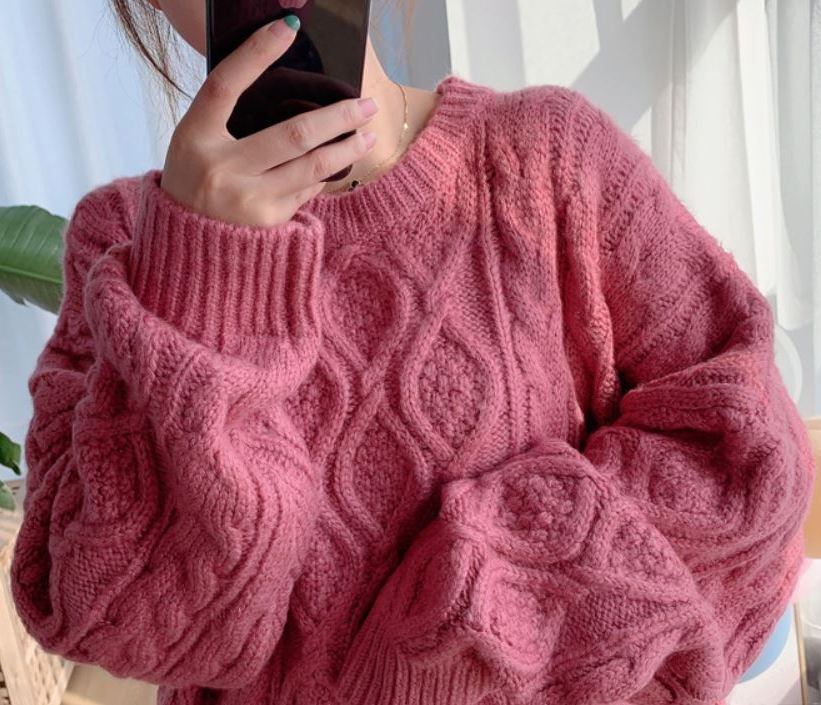 寒い時期にぴったりなケーブル編みデザインのニットトップス。