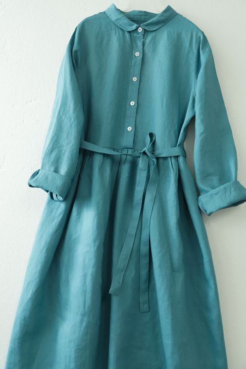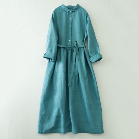 ドールカラーコットンワンピース ロング丈 袖あり シャツ袖 襟付き ラウンドカラー Aライン ウエストリボン 前開き ボタン 綿 かわいい 大人可愛い シンプル カジュアル おしゃれ お洒落 大人女子 こなれ感 ラフ ラブリー キュート ガーリー ルーズ 抜け感 無地 春 秋 10代 20代 30代 40代 レディース 女性用 ママ オフィス OL 通勤 学生 通学 デート お出かけ 公園デビュー 女子会 休日 リゾート 旅行 高原 ガーデン 着回し 普段使い ファッション コーデ スタイル 楽ちん モテ