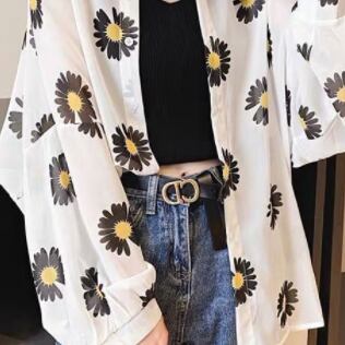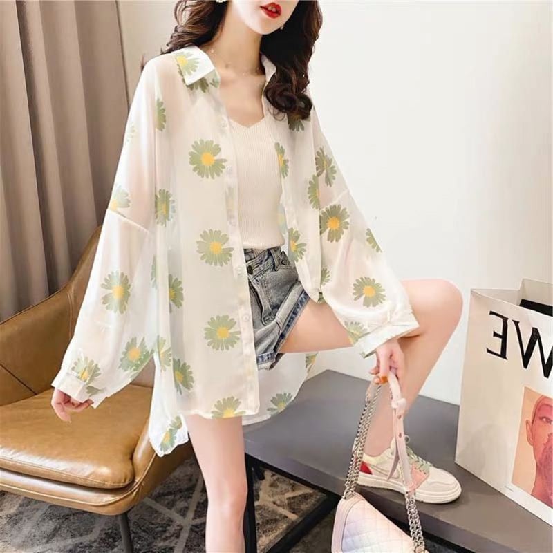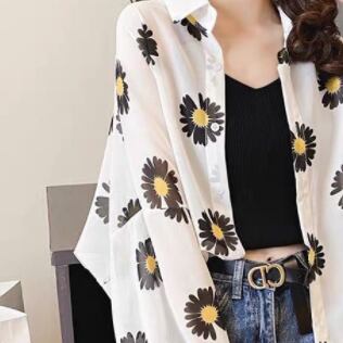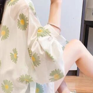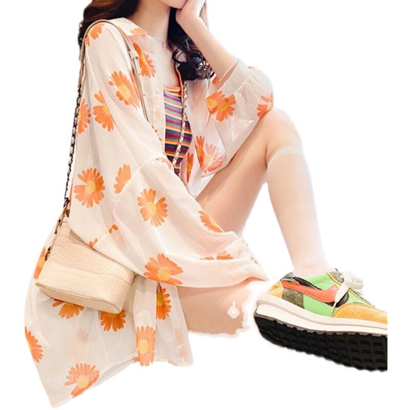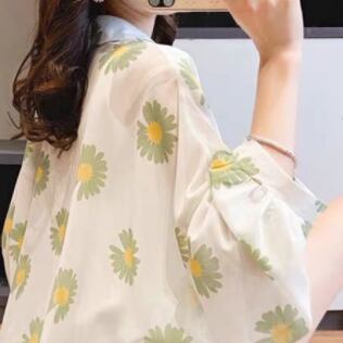 シフォンシャツ トップス カーディガン カジュアル ブラック 黒 グリーン 緑 オレンジ レギュラー丈 袖あり 長袖 襟付き ストレート シングルブレスト ボタン 大人女子 大人 上品 おしゃれ デイリーウェア レトロ レトロ風 こなれ感 ラフ ルーズ シルエット キュート かわいい 女子 個性的 デザイン 主役級 存在感 柄 花柄 フラワー 夏 サマー 20代 10代 通勤 学生 通学 着回し 普段使い 大きいサイズ プラスサイズ M L XL 2XL