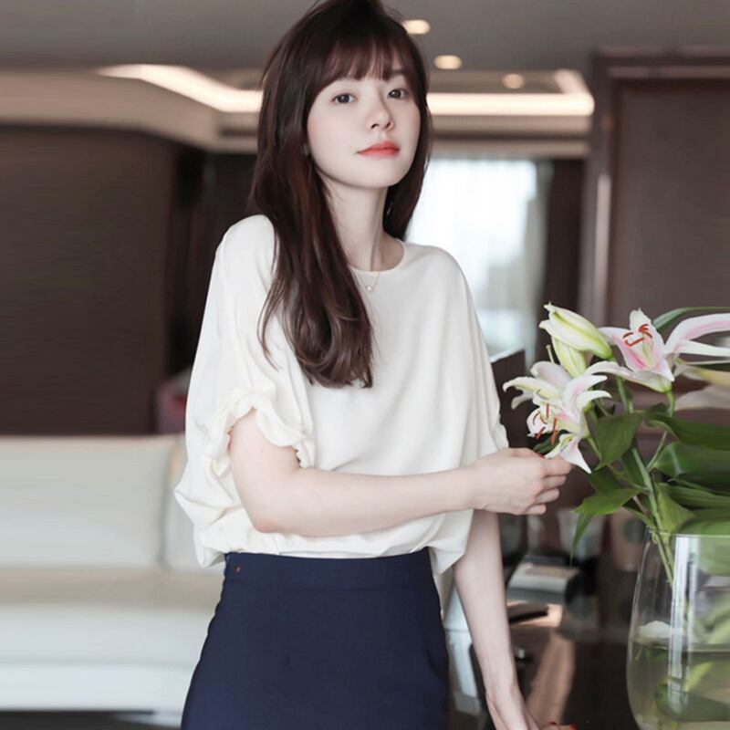 パフスリーブシフォンシャツ トップス ブラウス プルオーバー シンプル アプリコット レギュラー丈 袖あり 半袖 ボリューム袖 パフスリーブ ラウンドネック 大人女子 大人 上品 おしゃれ きれいめ シンプル デイリーウェア エレガント レトロ レトロ風 こなれ感 ラフ ルーズ シルエット キュート かわいい 女子 個性的 デザイン 主役級 存在感 無地 夏 サマー 20代 30代 40代 レディース 女性用 オフィス ビジネス OL 通勤 トレンド S M L XL
