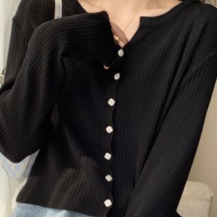 薄手カーディガン トップス ニット シンプル ブラック 黒 ホワイト 白 ブルー 青 ピンク ミニ丈 ショート丈 袖あり 長袖 ラウンドネック ストレート シングルブレスト ボタン ポリエステル アクリル 大人女子 大人 上品 おしゃれ きれいめ シンプル デイリーウェア レトロ レトロ風 こなれ感 ラフ ルーズ シルエット 主役級 存在感 無地 春 スプリング 夏 サマー 20代 10代 30代 レディース 女性用 通勤 学生 通学 着回し 普段使い S M L XL