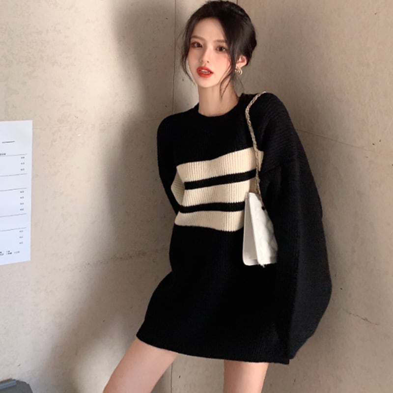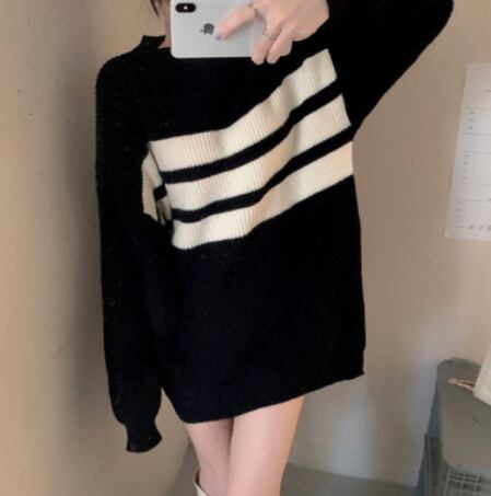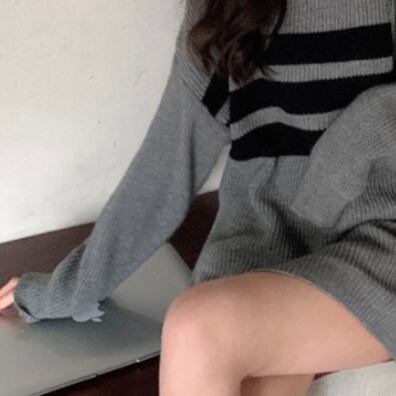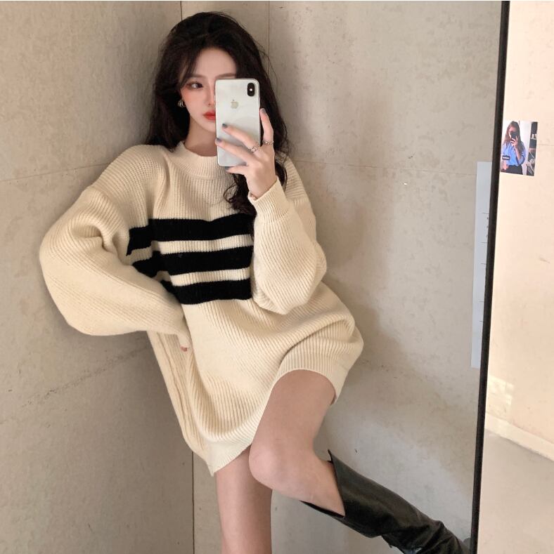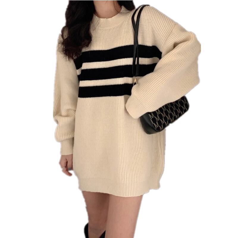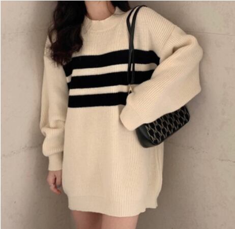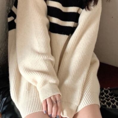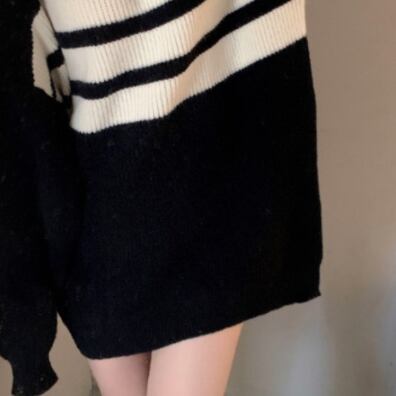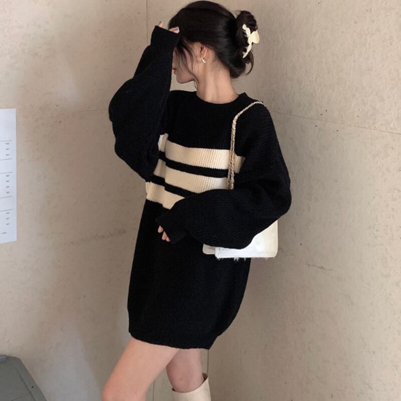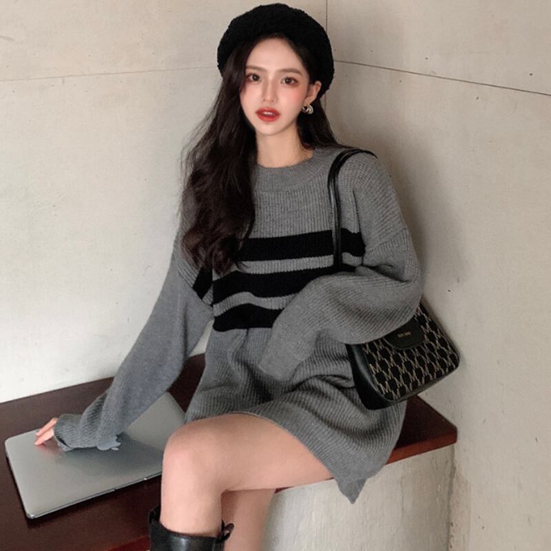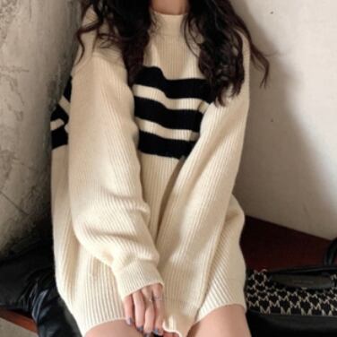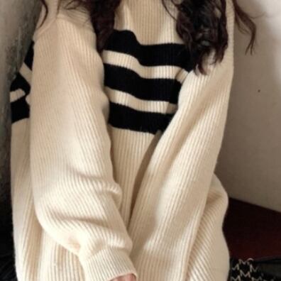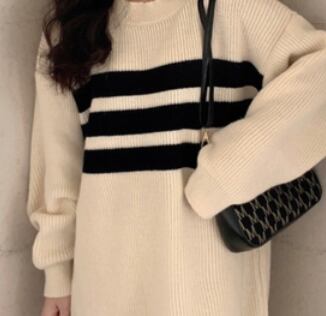 ボーダー柄ビッグニット トップス ニット セーター ロング丈 長袖 ラウンドネック かわいい 大人可愛い シンプル カジュアル おしゃれ かっこいい 大人可愛い ラフ 無地 柄 ボーダー 秋 冬 10代 20代 30代 40代 レディース ママ 女の子 学生 通学 デート お出かけ 公園デビュー 女子会 お泊まり 休日 着回し 普段使い お揃い 双子 オルチャン ファッション コーデ スタイル 楽ちん 暖かい モテ 体系カバー M L XL 2XL 3XL 4XL 大きいサイズ 大きめ ビッグサイズ