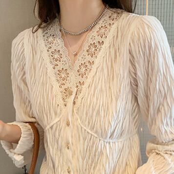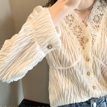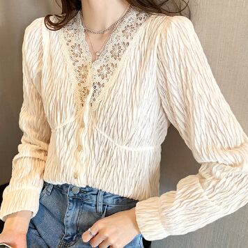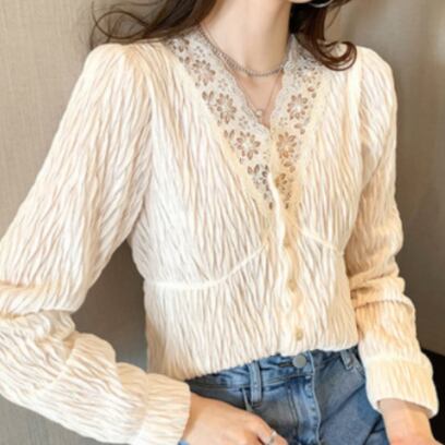 ナチュラルで優しい雰囲気のVネックシフォンブラウスです。