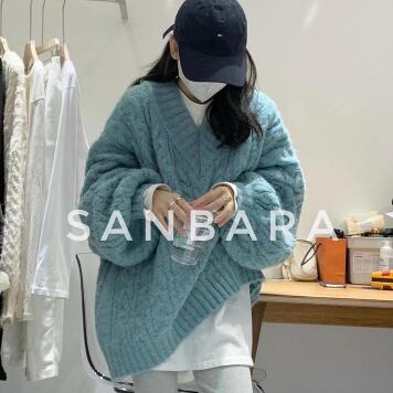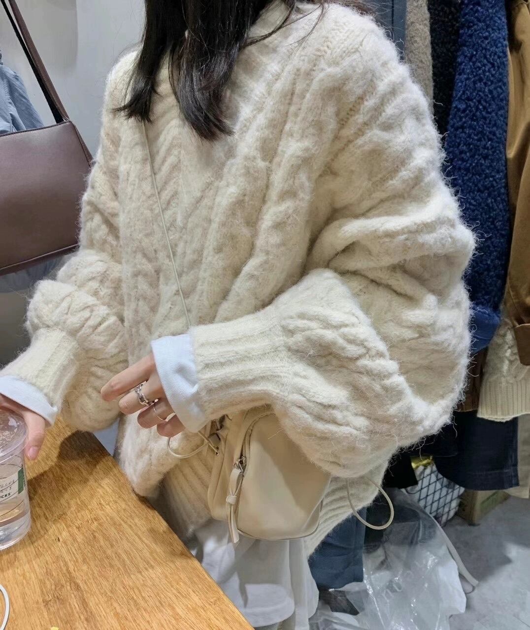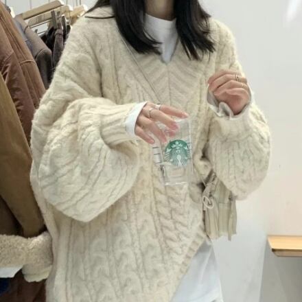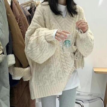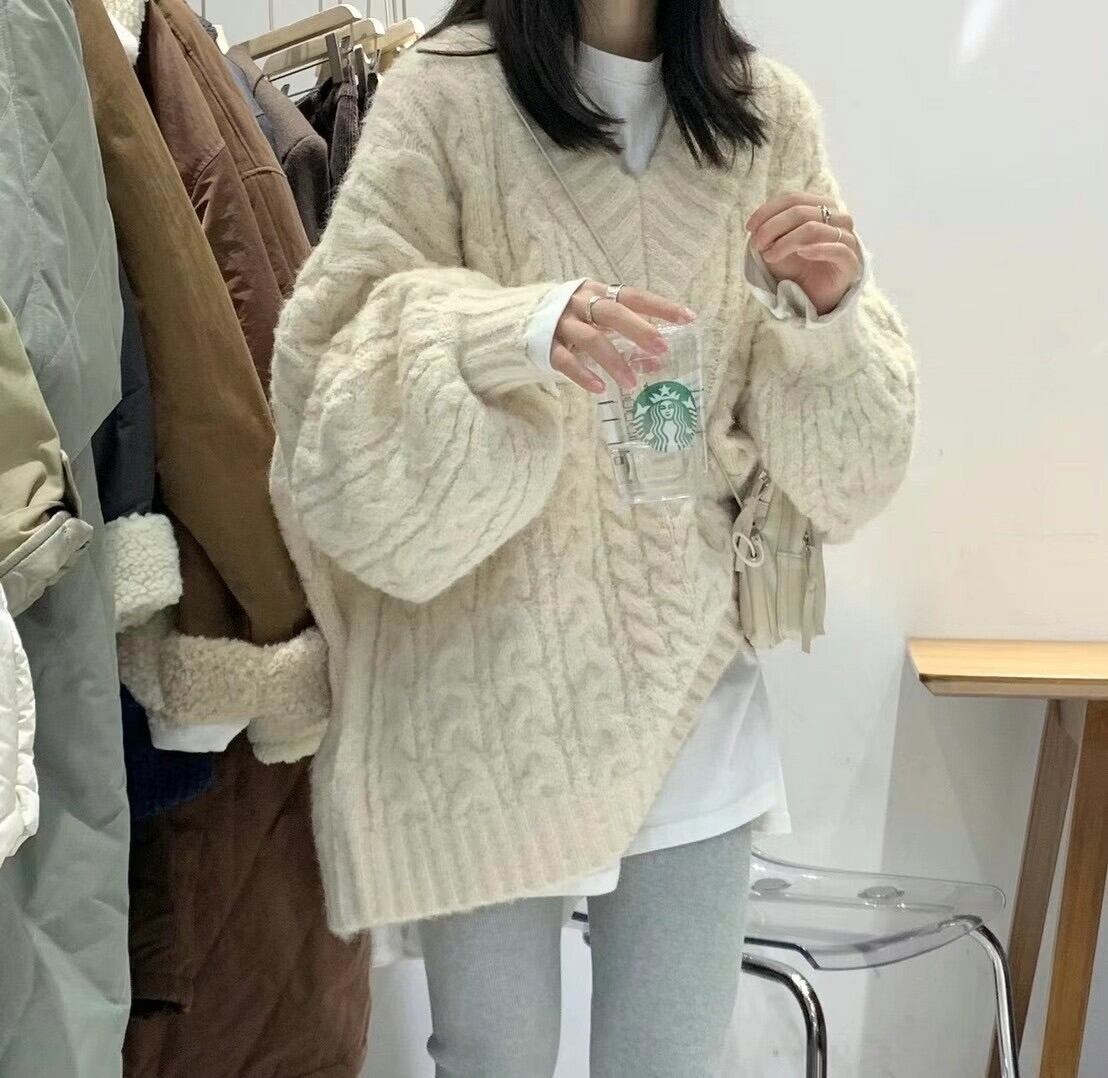 トップス セーター 長袖 萌袖 Vネック ケーブルニット 編み込み 厚手 かわいい 大人可愛い カジュアル 上品 おしゃれ お洒落 大人可愛い 大人女子 こなれ感 ラフ メンズライク キュート ガーリー 主役級 存在感 無地 秋 冬 10代 20代 30代 レディース 女性用 ママ 女の子 デート お出かけ 女子会 お泊まり 休日 着回し 普段使い 韓国 韓国系 ファッション コーデ スタイル 暖かい モテ 送料無料 トレンド 流行 インスタ映え 大きめ ビッグサイズ ゆったり ゆる インポート 海外