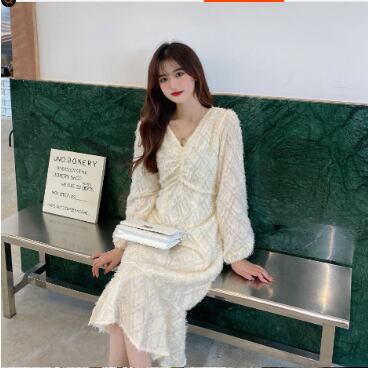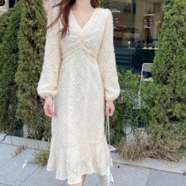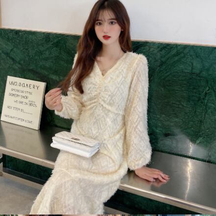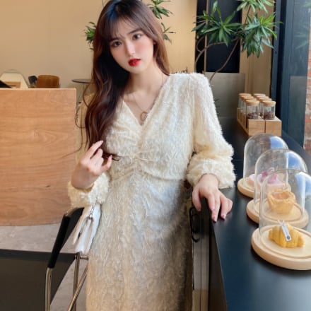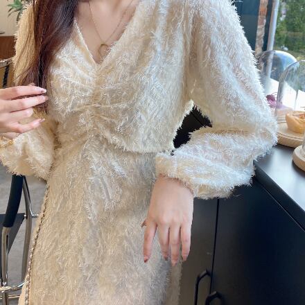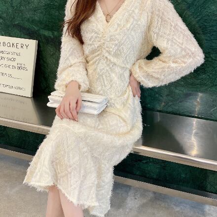 お上品で優しい雰囲気の長袖ロング丈ワンピースです。