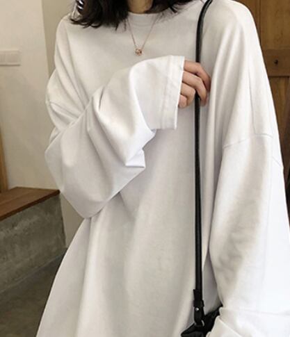 シンプル長袖Tシャツ トップス ロング丈 長袖 ラウンドネック ワイド 綿 かわいい 大人可愛い きれいめ シンプル カジュアル 大人 おしゃれ かっこいい ラフ メンズライク マニッシュ ボーイッシュ スポーティー 無地 春 秋 10代 20代 30代 40代 50代 60代 レディース ママ 女の子 学生 通学 お出かけ 公園デビュー 女子会 お泊まり 休日 ジム ヨガ アウトドア 着回し 普段使い 重ね着 お揃い ファッション コーデ スタイル 楽ちん M L XL 2XL 大きめ ゆったり