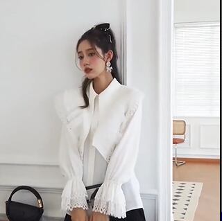 首元がレースになっているシャツです。
