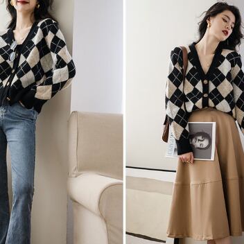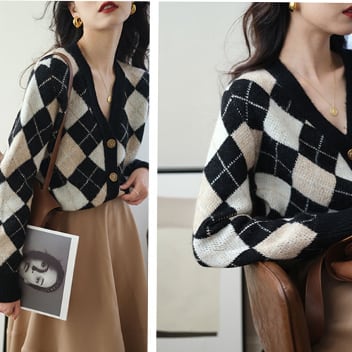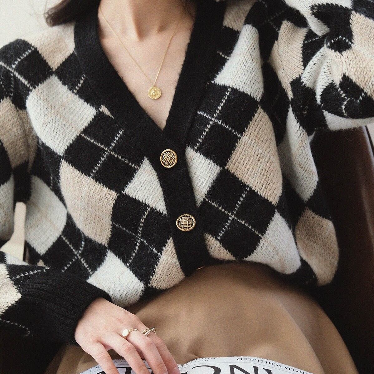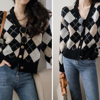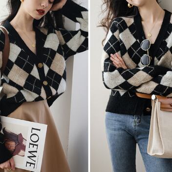 ダイア柄のセーターカーディガンです。