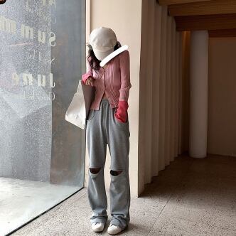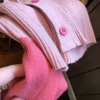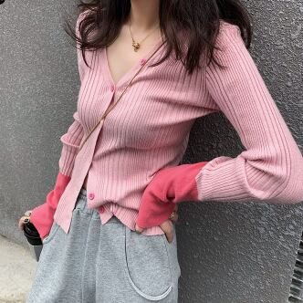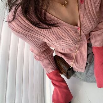 袖口が異素材MIXで個性的なリブニットカーディガンです。