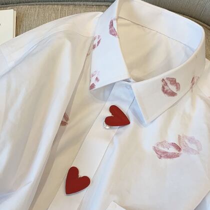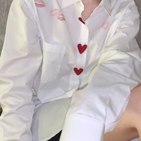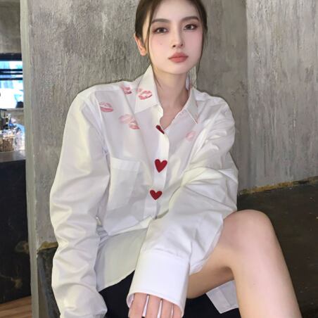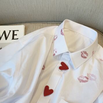 リップ柄シャツブラウス トップス 白シャツ ミディアム丈 袖あり 長袖 シャツ袖 襟付き スタンドカラー 前開き ボタン かわいい カジュアル おしゃれ お洒落 大人女子 こなれ感 ラフ メンズライク マニッシュ ラブリー キュート 個性的 モダン 主役級 存在感 無地 柄 リップ柄 春 秋 10代 20代 レディース 女性用 学生 お出かけ 休日 着回し ファッション コーデ スタイル モテ プレゼント トレンド 流行 インスタ映え 海外 イメチェン 好感度 イメージアップ 話題 新入荷 今だけ