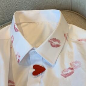 大胆なリップ柄が存在感のあるシャツブラウスです。