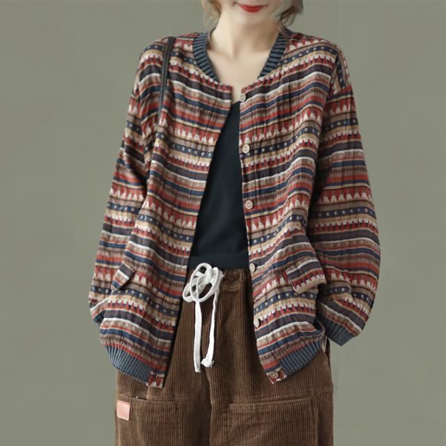 エスニックプリントカーディガントップス ミディアム丈 袖あり ラウンドネック 前開き ボタン 綿 かわいい 大人可愛い カジュアル 大人 上品 おしゃれ お洒落 かっこいい レトロ アジアン エスニック エキゾチック 大人女子 こなれ感 ラフ ラブリー キュート 個性的 モダン 主役級 存在感 抜け感 プリント 春 秋 10代 20代 30代 レディース 女性用 ママ OL 通勤 学生 通学 デート お出かけ 公園デビュー 休日 旅行 着回し 普段使い ファッション コーデ スタイル モテ 新作 トレンド