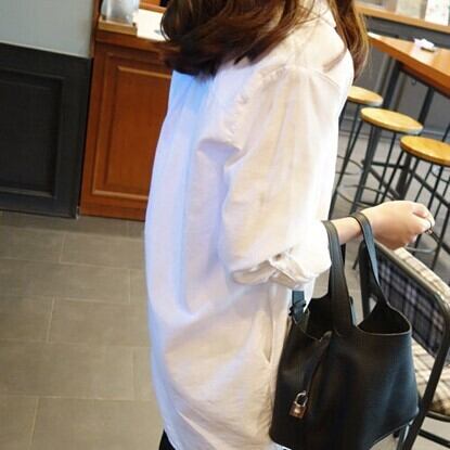 細身のシルエットがスマートでありながら、ストレートな形がきちんと感も演出してくれます。ホワイトの無地だからこそ、大人上品な雰囲気が漂います。一枚でも、羽織としても重宝する嬉しいアイテムです。