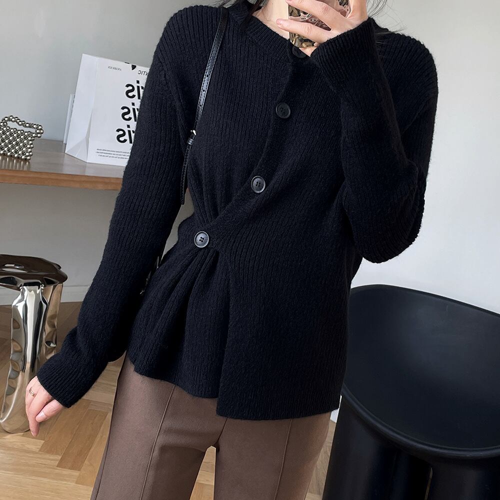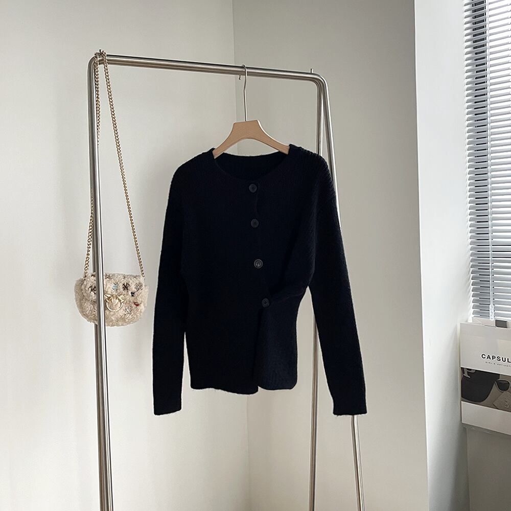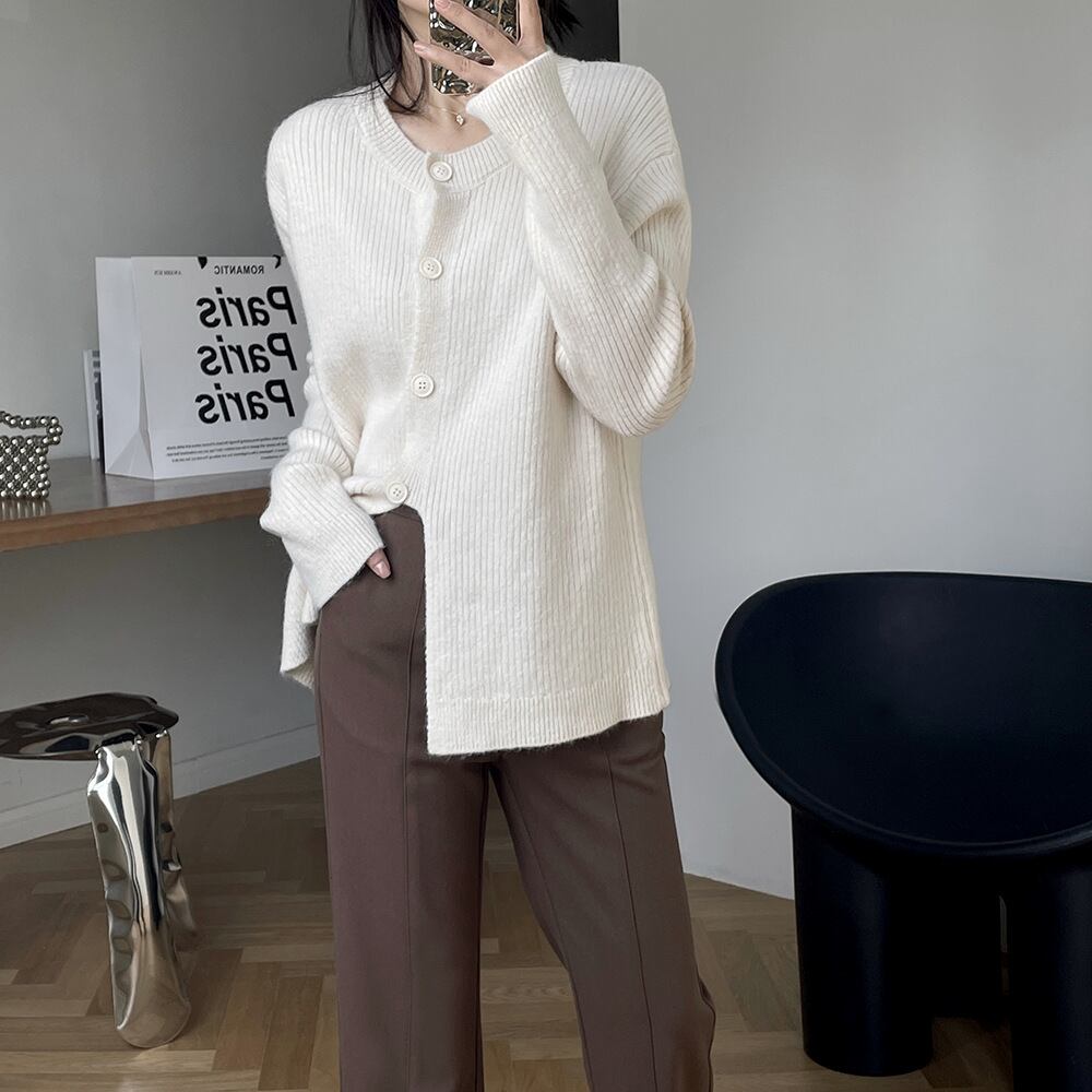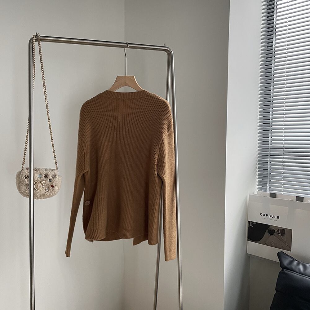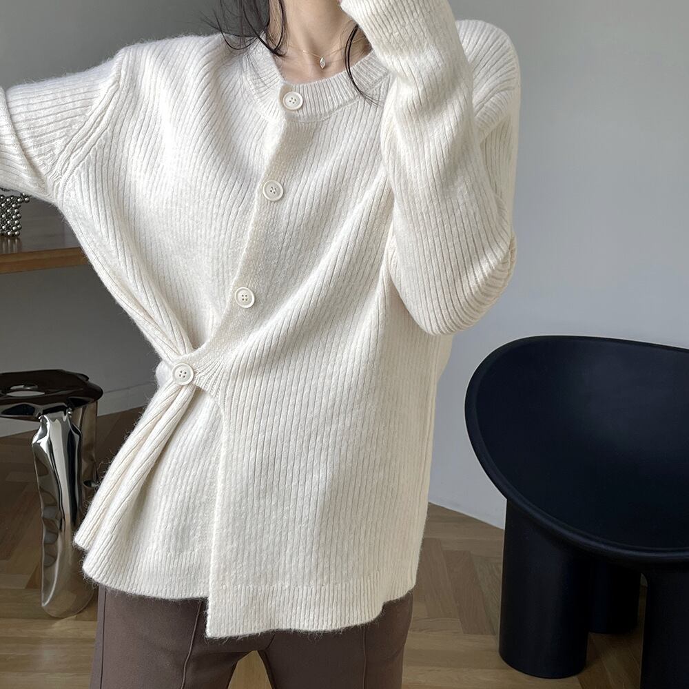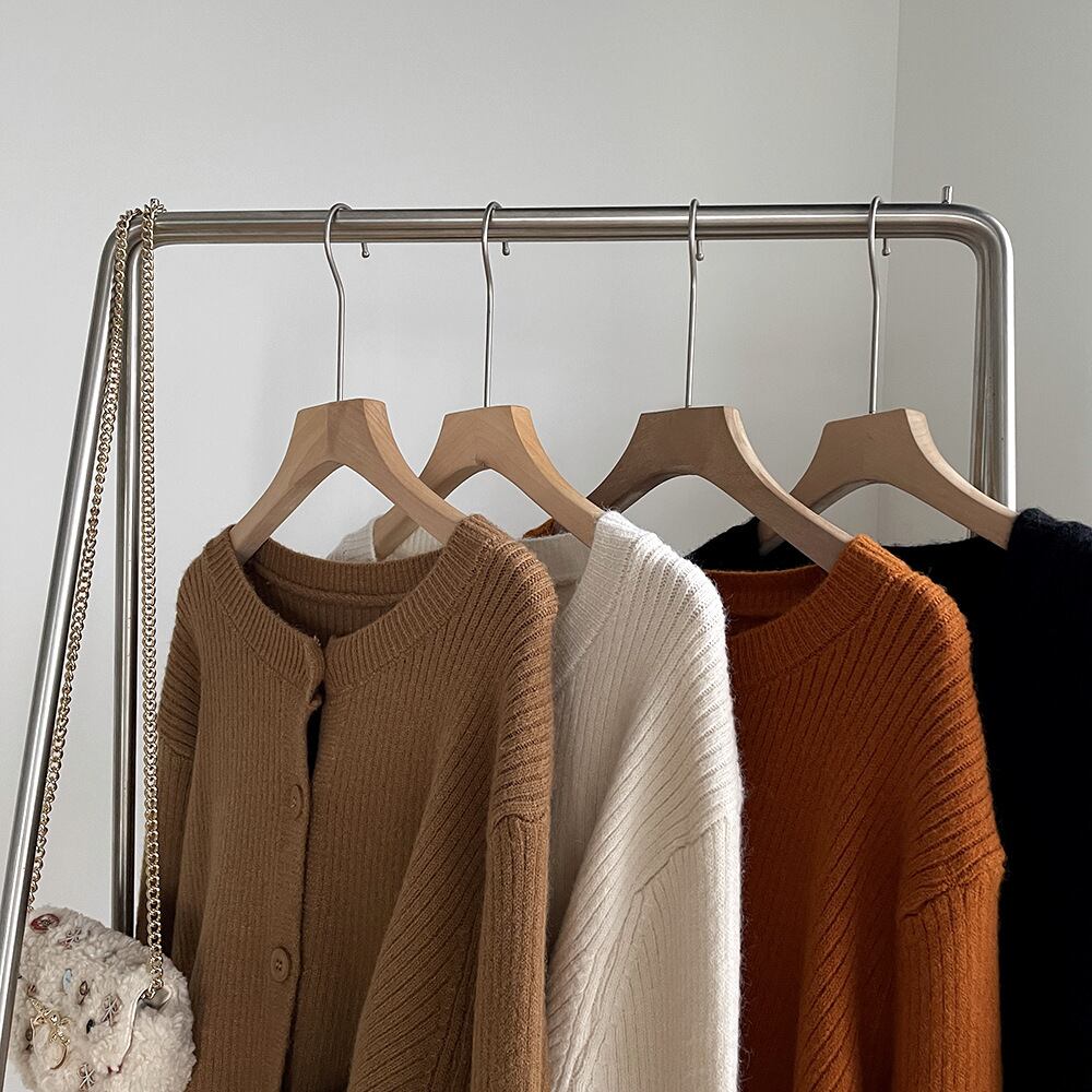 上品な無地のセーターカーディガン。スマートでこなれ感のあるデザイン