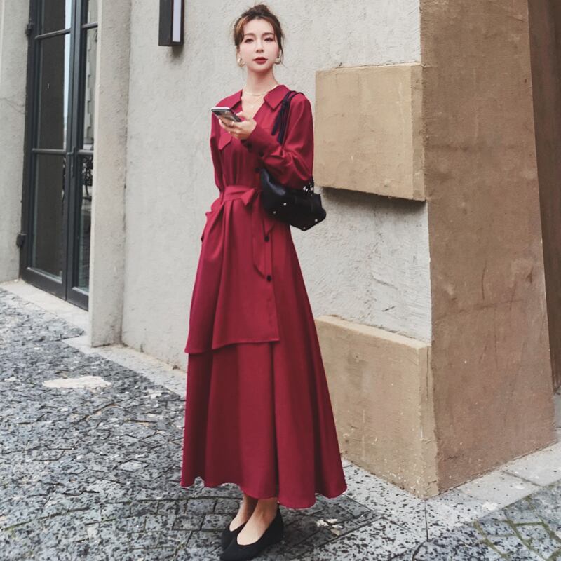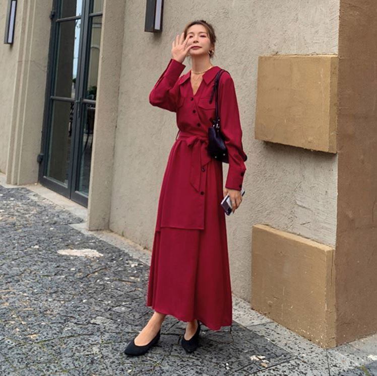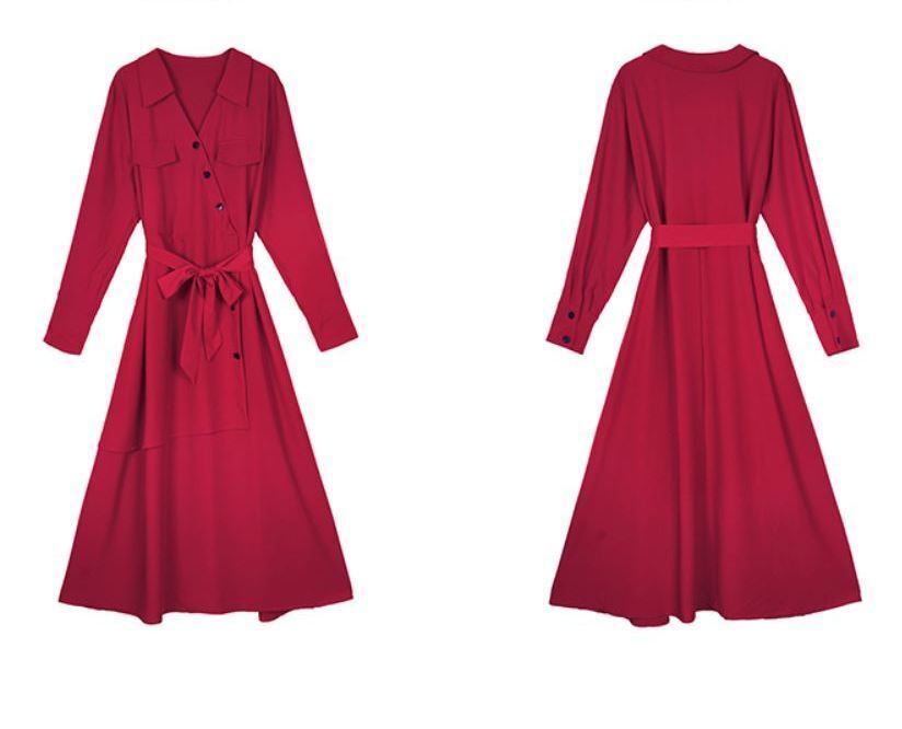 カシュクール調 斜めボタン アシンメトリー ラップ風 スキッパー シャツワンピース 膝下 ミモレ丈 ロング 長袖 襟付き シフォン ウエストマーク ウエストリボン 切り替えデザイン ポリエステル きれいめ シンプル カジュアル 上品 おしゃれ かっこいい 大人女子 こなれ感 個性的 クール 存在感 無地 春 秋 冬 レディース ママ OL 通勤 学生 通学 デート お出かけ 女子会 普段使い 韓国系 体系カバー スタイリッシュ 新作 S M L XL ゆったり サイズ ブラック ワインレッド