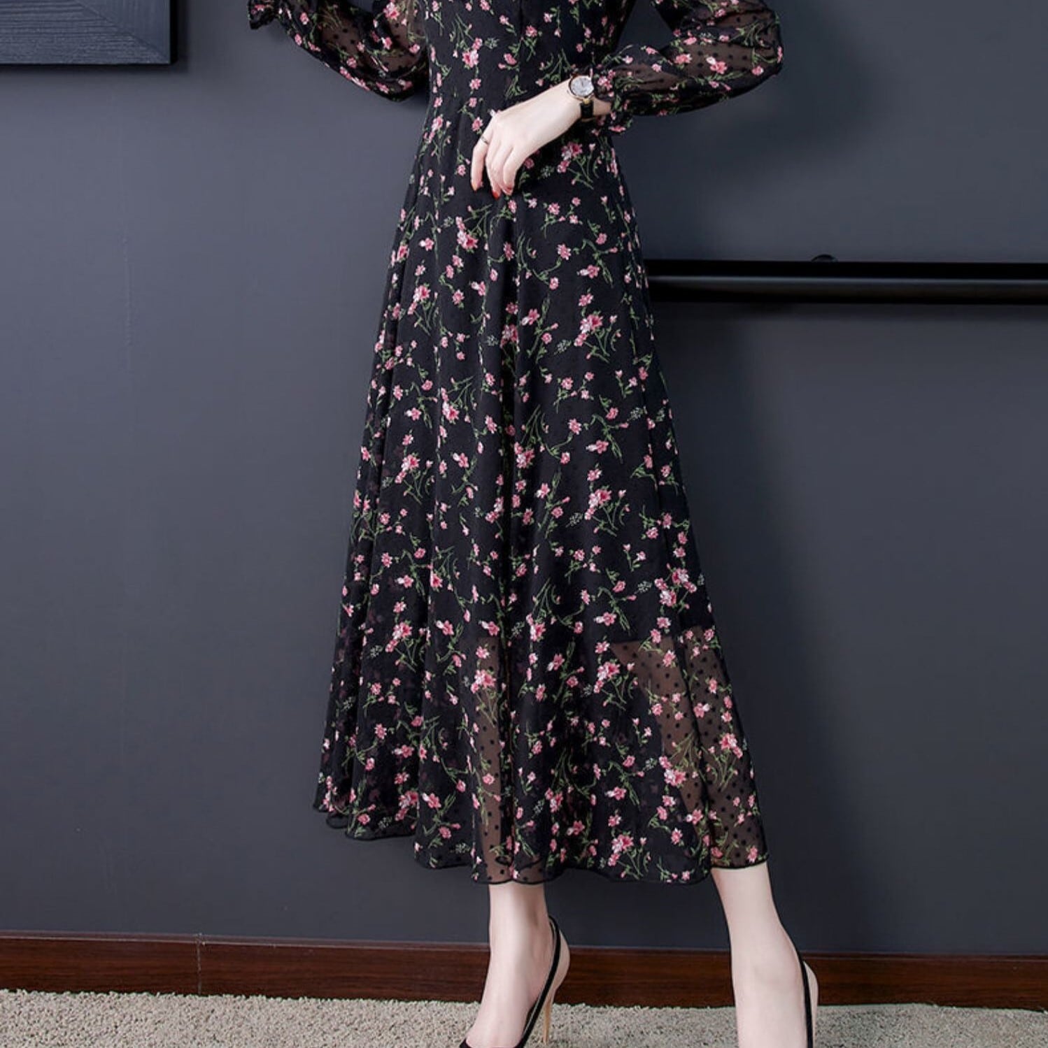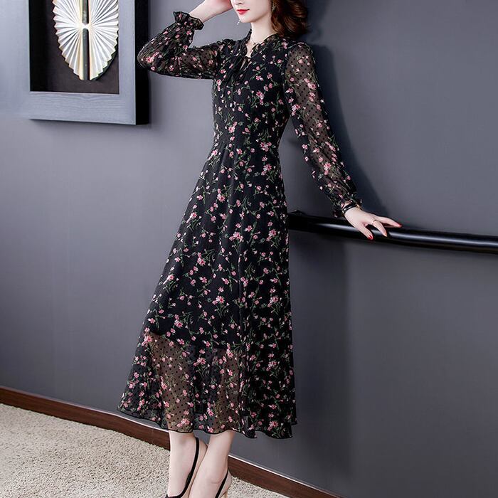 花柄ワンピース ブラック ワンピース ロング スリム 細身 ストレート スマート かわいい きれいめ シンプル 大人 上品 おしゃれ 大人可愛い 大人女子 こなれ感 ラフ クール モード系 セクシー エレガント 無地 春 秋 冬 誕生日 謝恩会 二次会 ハロウィン クリスマス バレンタイン レディース 女性用 学生 通学 デート お出かけ 女子会 お泊まり 休日 アウトドア パーティー イベント リゾート 旅行 ホテル レストラン 着回し 普段使い 韓国 韓国系 オルチャン ファッション コーデ ギフト