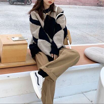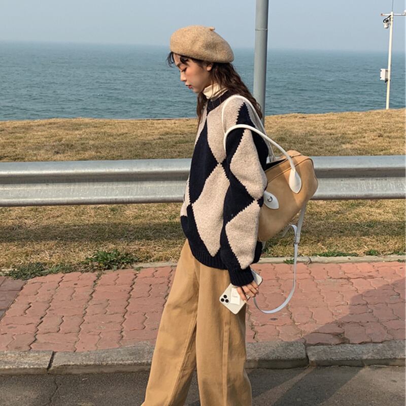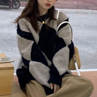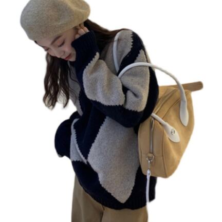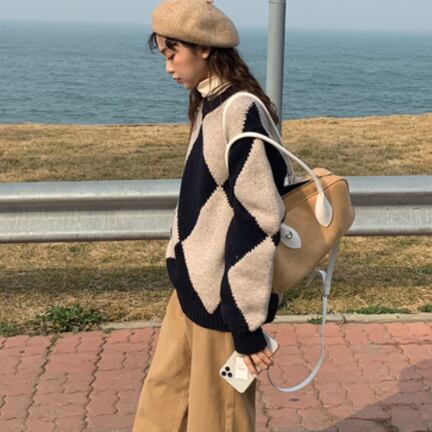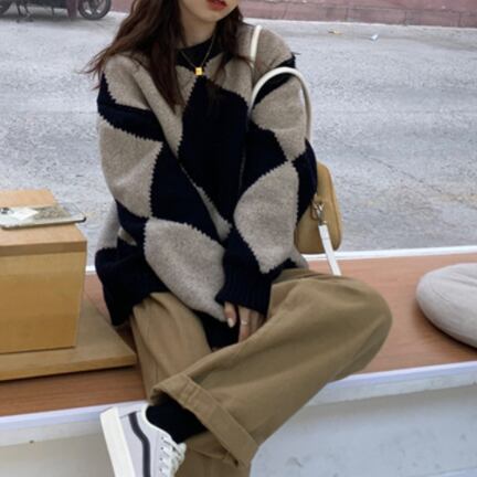 ダイヤモンドパターンセータートップス ミディアム丈 袖あり 長袖 ラウンドネック ワイド ニット かわいい 大人可愛い きれいめ シンプル 大人 上品 おしゃれ かっこいい レトロ 大人女子 こなれ感 ラフ マニッシュ ラブリー クール モード系 モダン 主役級 存在感 抜け感 ダイヤ柄 秋 冬 10代 20代 30代 レディース 女性用 ママ オフィス OL 通勤 学生 通学 デート お出かけ 公園デビュー 休日 アウトドア リゾート 旅行 着回し 普段使い ファッション コーデ スタイル 暖かい