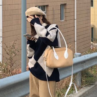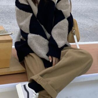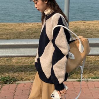 モダンなツートンカラーのダイヤモンド柄がクールなセータです。