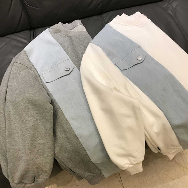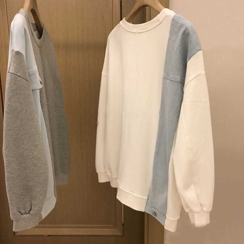 バイカラーで作られたスウェットトップスです。