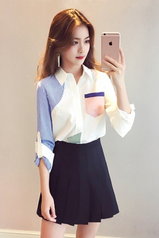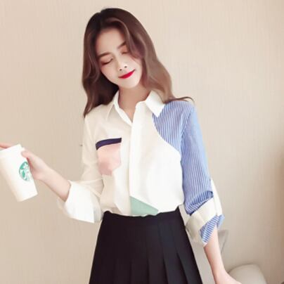 トップス シャツ 白シャツ 長袖 襟付き かわいい 大人可愛い おしゃれ お洒落 レトロ 大人可愛い 大人女子 ラブリー キュート ガーリー 個性的 主役級 存在感 春 秋 冬 10代 20代 30代 レディース 女性用 ママ 女の子 学生 デート お出かけ 女子会 お泊まり 休日 着回し 普段使い 韓国 韓国系 ファッション コーデ スタイル モテ 新作 定番 送料無料 トレンド 流行 インスタ映え インポート 海外 人気 大人カジュアル パッチワーク風 コスパ レイヤード 着回し 合わせやすい 女子力