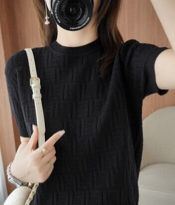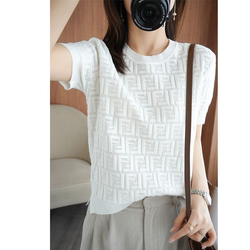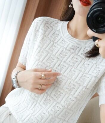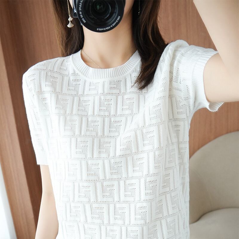 クラッシックパターンサマーニットトップス ニット ミディアム丈 袖あり 半袖 ラウンドネック サマーニット かわいい 大人可愛い きれいめ シンプル 大人 上品 おしゃれ かっこいい クール モード系 エレガント モダン 主役級 抜け感 無地 夏 10代 20代 30代 40代 レディース 女性用 ママ オフィス OL 通勤 学生 通学 デート お出かけ 女子会 休日 リゾート 旅行 ガーデン レストラン 着回し ファッション コーデ スタイル モテ トレンド 流行 インスタ映え 好感度 イメージアップ