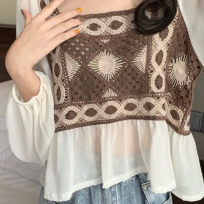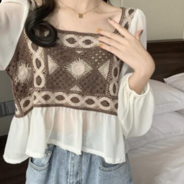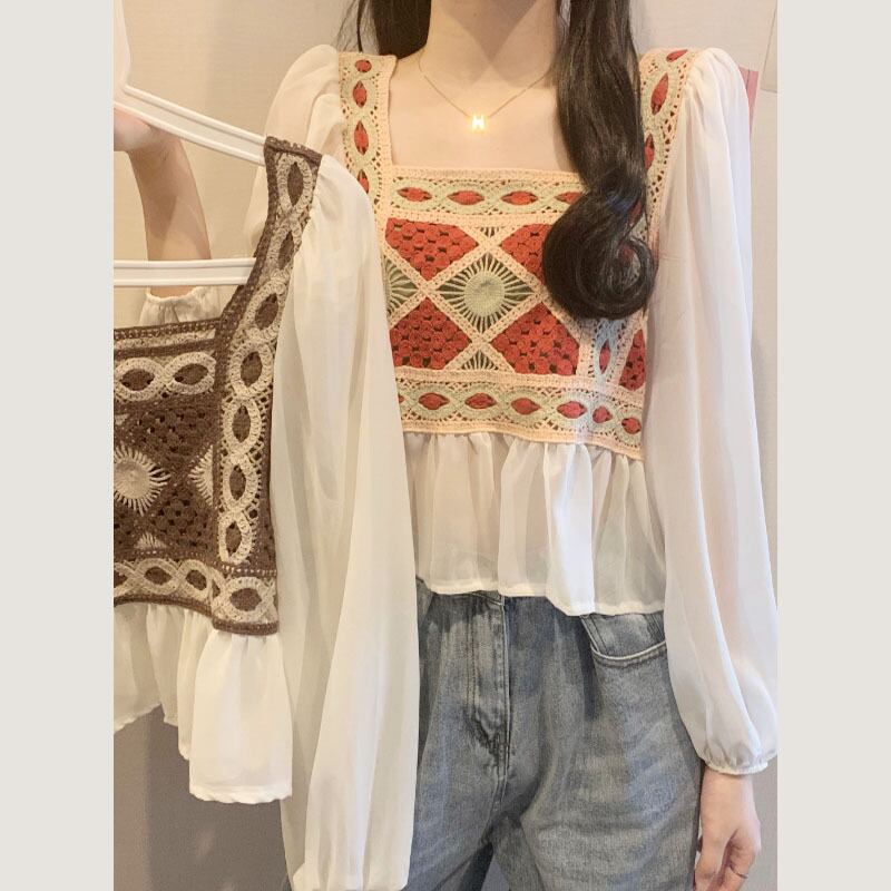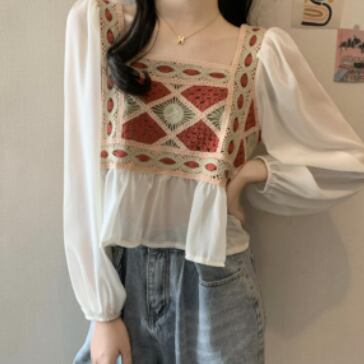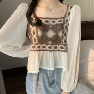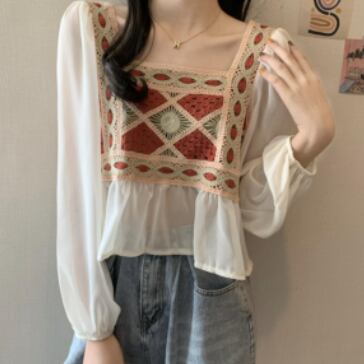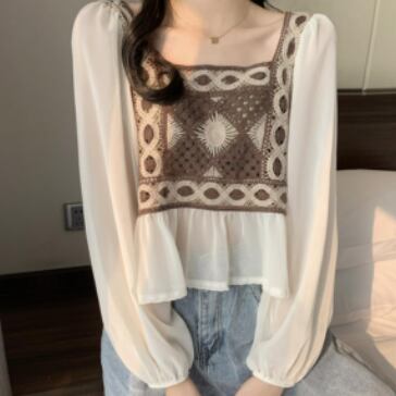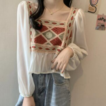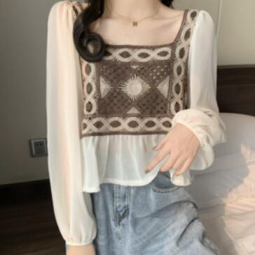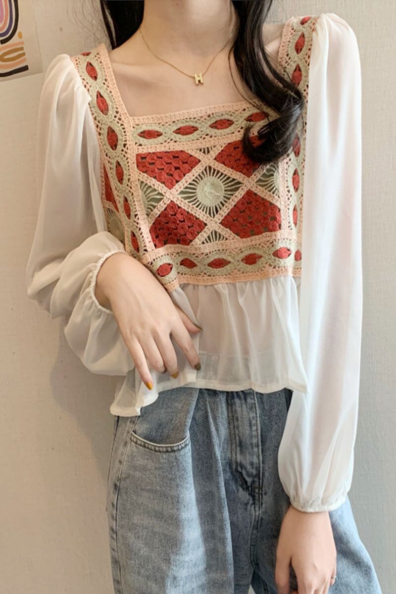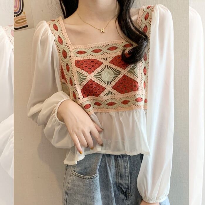 トップス 長袖 スクエアネック 刺繍 シフォン 切り替えデザイン ドッキング かわいい 大人可愛い カジュアル おしゃれ お洒落 レトロ アジアン エスニック 大人可愛い 大人女子 キュート ガーリー 個性的 主役級 存在感 春 夏 10代 20代 30代 レディース 女性用 ママ 女の子 デート お出かけ 女子会 お泊まり 休日 着回し 韓国 韓国系 ファッション コーデ スタイル モテ 新作 定番 送料無料 トレンド 流行 インスタ映え インポート 海外 人気 大人カジュアル 合わせやすい 女子力
