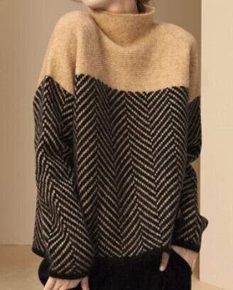 暖かさとおしゃれさを兼ね備えた、ブラウンのタートルネックセーターをご紹介します。スマートなシルエットでシンプルながら、スリムで美しく着こなせる一品です。春秋冬のシーズン問わず、大人上品なスタイルを作り出すことが出来ます。
