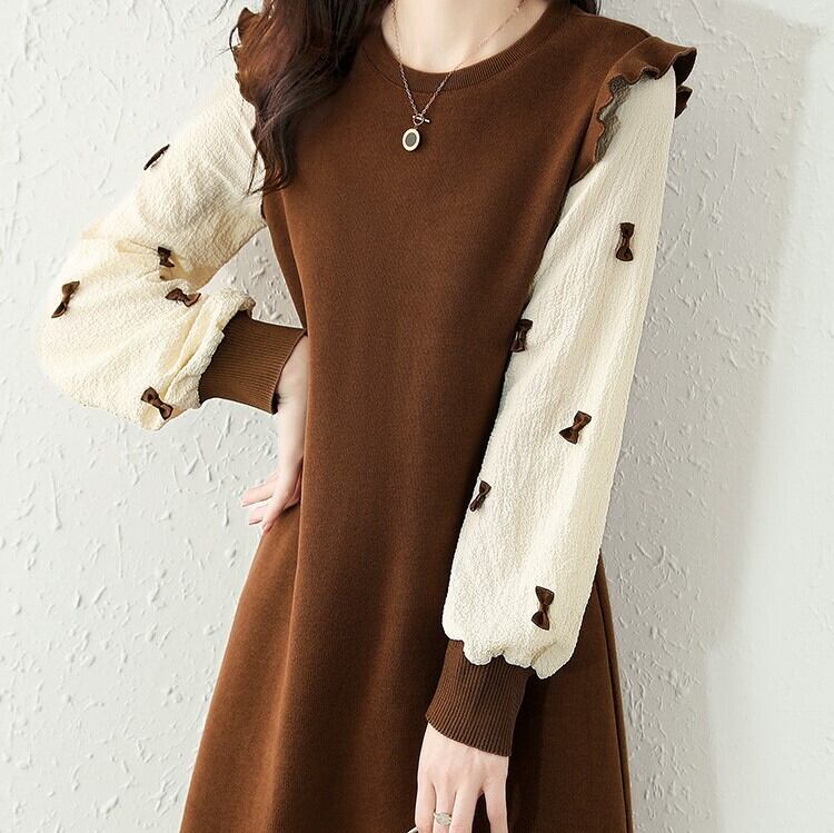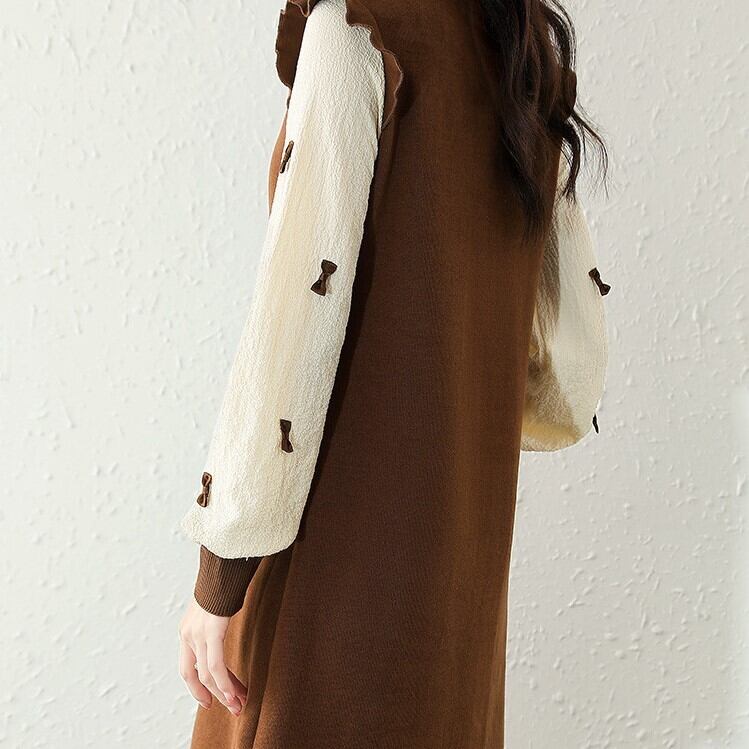 リボン付きワンピース ブラウン ワンピース ニットソー セーター スリム 細身 ストレート スマート かわいい きれいめ シンプル 大人 上品 おしゃれ 大人可愛い 大人女子 こなれ感 ラフ クール モード系 セクシー エレガント 無地 春 秋 冬 誕生日 謝恩会 二次会 ハロウィン クリスマス バレンタイン レディース 女性用 学生 通学 デート お出かけ 女子会 お泊まり 休日 アウトドア パーティー イベント リゾート 旅行 ホテル レストラン 着回し 普段使い 韓国 韓国系 オルチャン ギフト