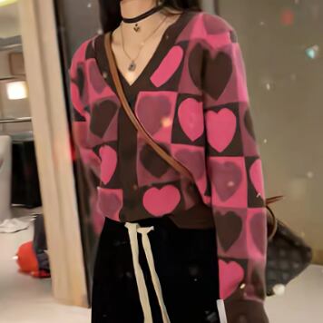 ウールカーディガン トップス セーター カーディガン 長袖 Vネック 前開き バイカラー かわいい 大人可愛い おしゃれ お洒落 レトロ 大人可愛い 大人女子 ラブリー キュート ガーリー 個性的 主役級 存在感 ハート ハート柄 春 秋 冬 10代 20代 30代 レディース 女性用 ママ 女の子 着回し 普段使い 重ね着 韓国 韓国系 ファッション コーデ スタイル 暖かい モテ 新作 定番 送料無料 トレンド 流行 インスタ映え インポート 大人カジュアル 人気 海外 コスパ 女子力 着回し