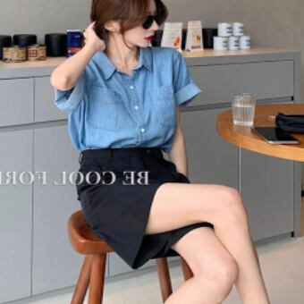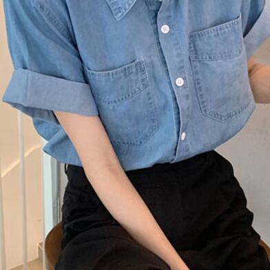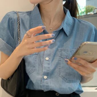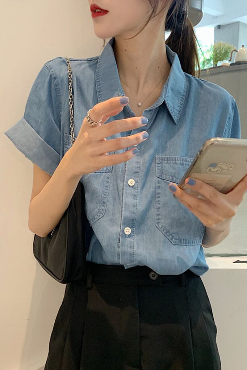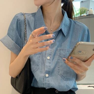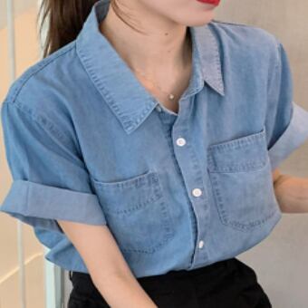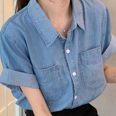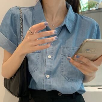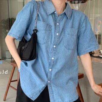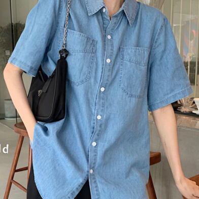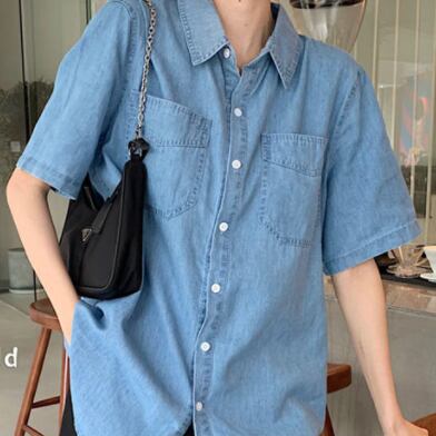 デニムシャツ トップス シャツ 半袖 襟付き 前開き デニム ブルーデニム かわいい 大人可愛い シンプル カジュアル おしゃれ お洒落 かっこいい レトロ 大人可愛い 大人女子 こなれ感 ラフ キュート ガーリー ルーズ 主役級 存在感 無地 春 夏 10代 20代 30代 レディース 女性用 女の子 デート お出かけ 女子会 お泊まり 休日 着回し 普段使い 重ね着 韓国 韓国系 ファッション コーデ スタイル モテ 新作 定番 送料無料 トレンド 流行 インスタ映え インポート 海外 人気