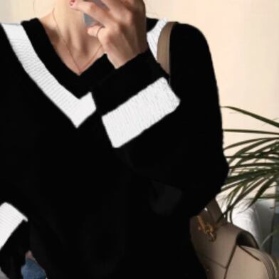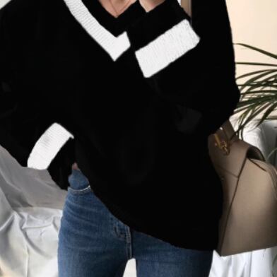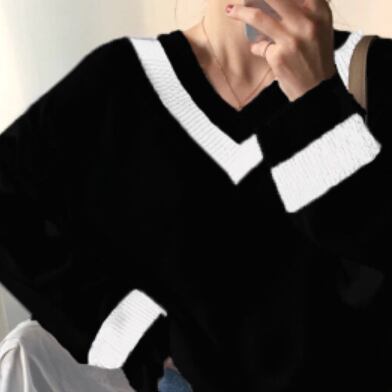 バイカラーのラインが特徴的なセーターです。
