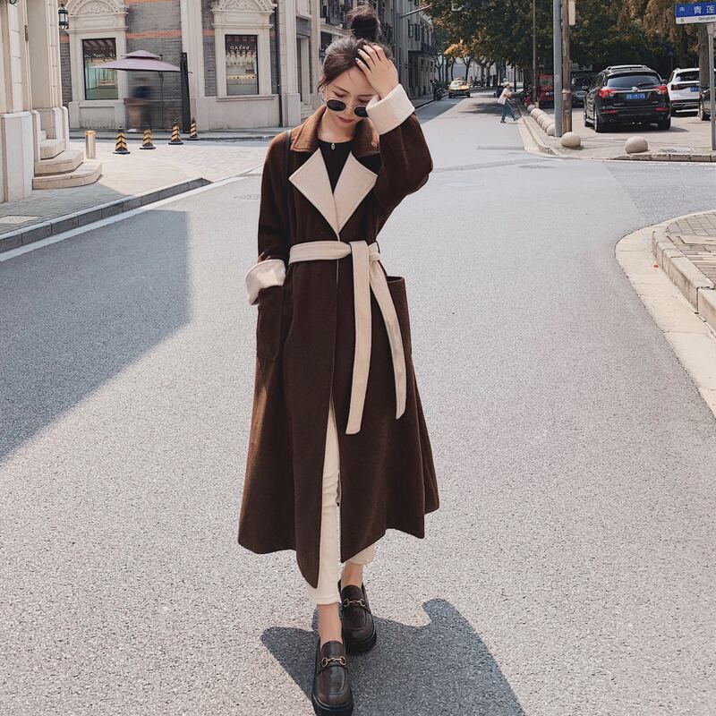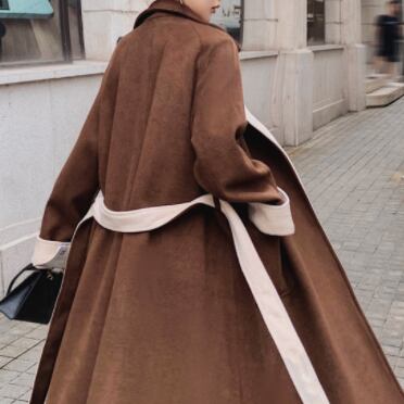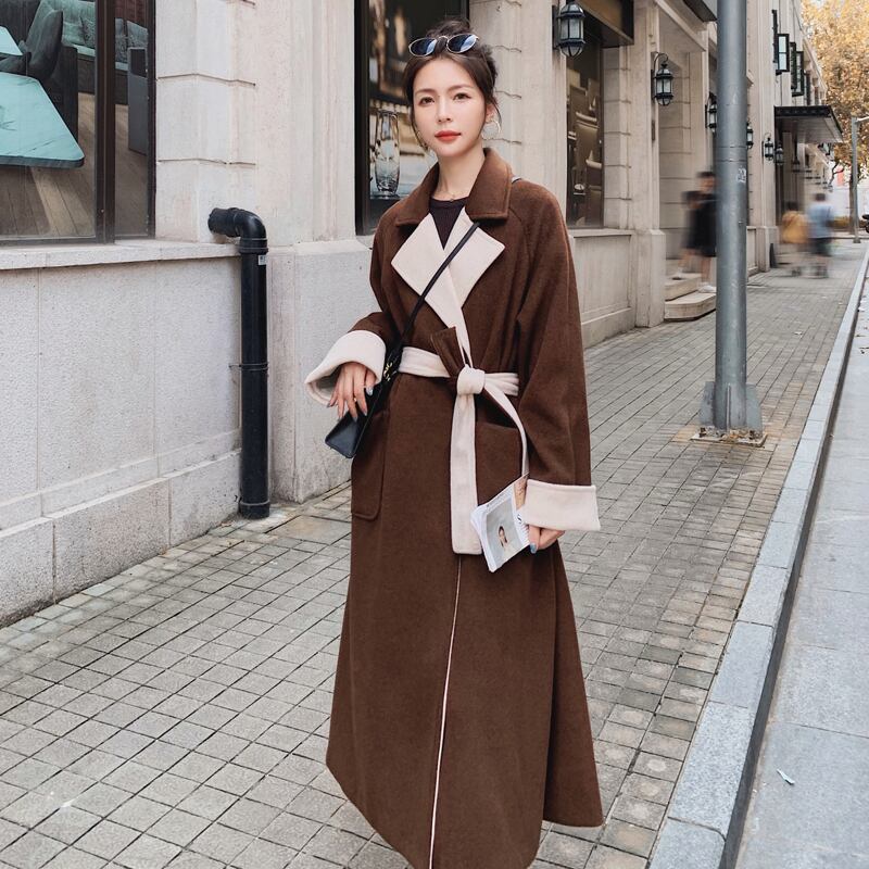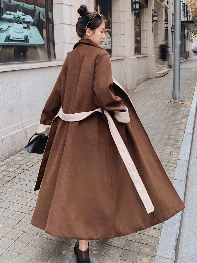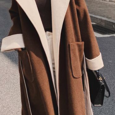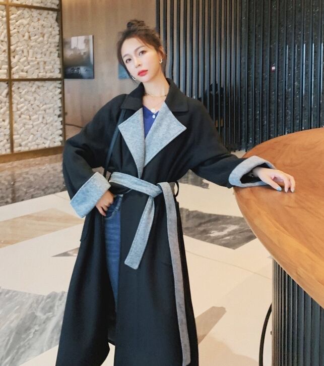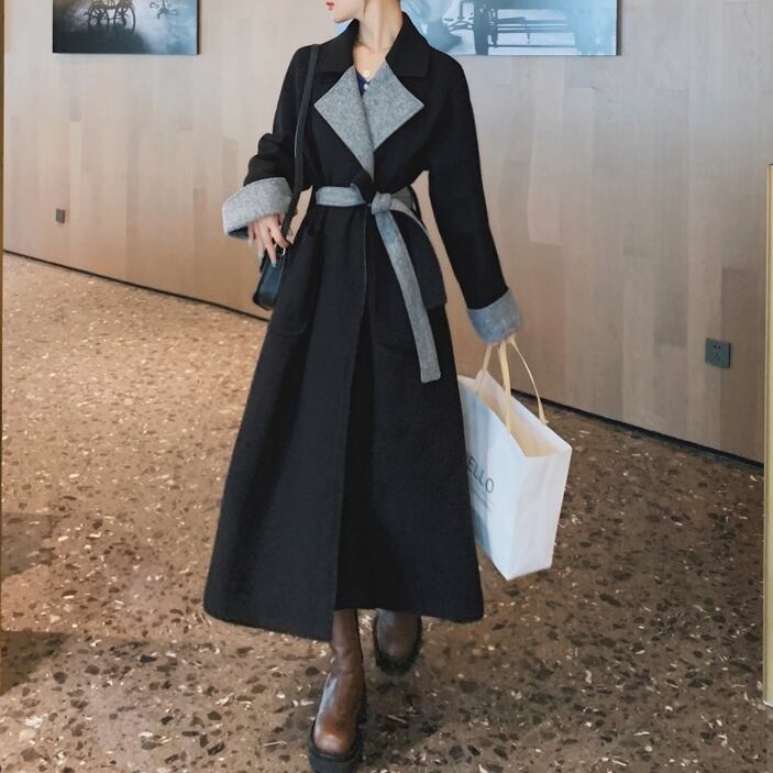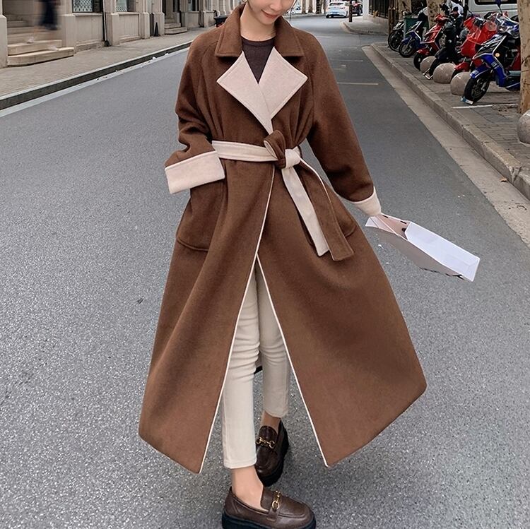 オーバーサイズ バイカラー配色 ラグランスリーブ切替え ガウンコート アクリル アウター コート 膝下 ミモレ丈 ロング 長袖 Vネック 襟付き 切り替えデザイン ウエストマーク ウエストリボン ポケット 前開き ポリエステル 大人可愛い シンプル カジュアル 上品 おしゃれ 大人女子 セクシー 無地 秋 冬 レディース 女性用 ママ 女の子 学生 通学 デート お出かけ 女子会 着回し 普段使い 重ね着 韓国系 オルチャン スタイル コーデ 大きめ ゆったり ゆる サイズ ブラック ブラウン