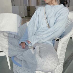 トップス セーター 長袖 萌袖 ラウンドネック 編み込み ニット 厚手 かわいい 大人可愛い おしゃれ お洒落 レトロ 大人可愛い 大人女子 こなれ感 ラフ キュート ガーリー 主役級 存在感 秋 冬 10代 20代 30代 レディース 女性用 ママ 女の子 デート お出かけ 女子会 お泊まり 休日 着回し 普段使い 韓国 韓国系 オルチャン ファッション コーデ スタイル 暖かい モテ 新作 定番 送料無料 トレンド 流行 インスタ映え インポート 海外 大人カジュアル 女子力 パステルカラー ゆる
