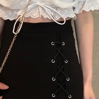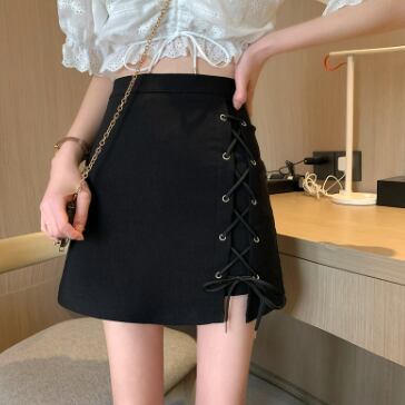 クロスストラップスカート ショート Aライン リボン ファスナー ハイウエスト ゴシック かわいい 大人可愛い カジュアル 大人 おしゃれ お洒落 かっこいい 大人女子 こなれ感 ラブリー 個性的 クール モード系 セクシー モダン 主役級 存在感 無地 春 夏 秋 10代 20代 レディース 女性用 OL 学生 通学 デート お出かけ 女子会 休日 リゾート 旅行 着回し ファッション コーデ スタイル モテ 美脚 脚長 新作 トレンド 流行 インスタ映え イメチェン 好感度 イメージアップ 注目